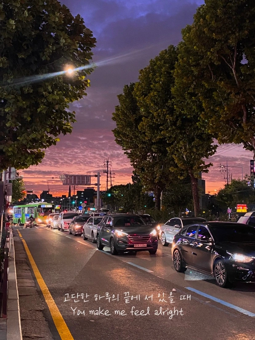 지친 몸을 이끌고 버스에서 꾸벅꾸벅 졸며 퇴근하는 길, 환승하려 버스 정류장에 내리니 하늘은 아름다운 핑크빛으로 물들었고 그 빛에 사람들의 얼굴도 선홍빛을 띈다. 피곤해서 정류장 의자에 앉아서 버스를 기다리려 했지만 핑크 노을을 보는 순간 벌떡 일어나 카메라를 켜고 사진을 찍기 시작했다. 그런 내 모습을 보고는 주변에서 버스를 기다리는 몇몇 사람들도 카메라를 들고 노을을 찍는 모습을 보였다. 그 순간 뭔가 모를 뿌듯함과 행복감이 몰려왔다. 핑크 노을이 있는지도 모른채 지쳐있는 사람들에게 아름다움을 발견할 수 있도록 도와준 것 같은 느낌이 들었다. 세상은 필요, 쓸모, 유용만 가지고 살아갈 수 없다. 그러한 것들은 우리의 삶을 더 효율적으로 만들어줄 것이고, 삶을 더 풍요롭게 행복하게 만들어주는 것은 필요도 쓸모도 없고 유용하지도 않은 아름다움이다. 없이도 살 수 있기 때문에 더욱 소중하면서 간과하기 쉬운 것이 아름다움이 아닐까. 그 아름다움은 꼭 멋지고 비싼 미술관에 가지 않아도 된다. 길을 걷다 잠시 고개를 들어 하늘만 봐도 우리를 행복하게 해주는 것을 발견할 수 있다. 중요한 것은 대상보다는 시선이다. 일상의 아름다움을 발견할 수 있는 시선으로 더 풍요롭게 행복한 삶을 살고 싶다.