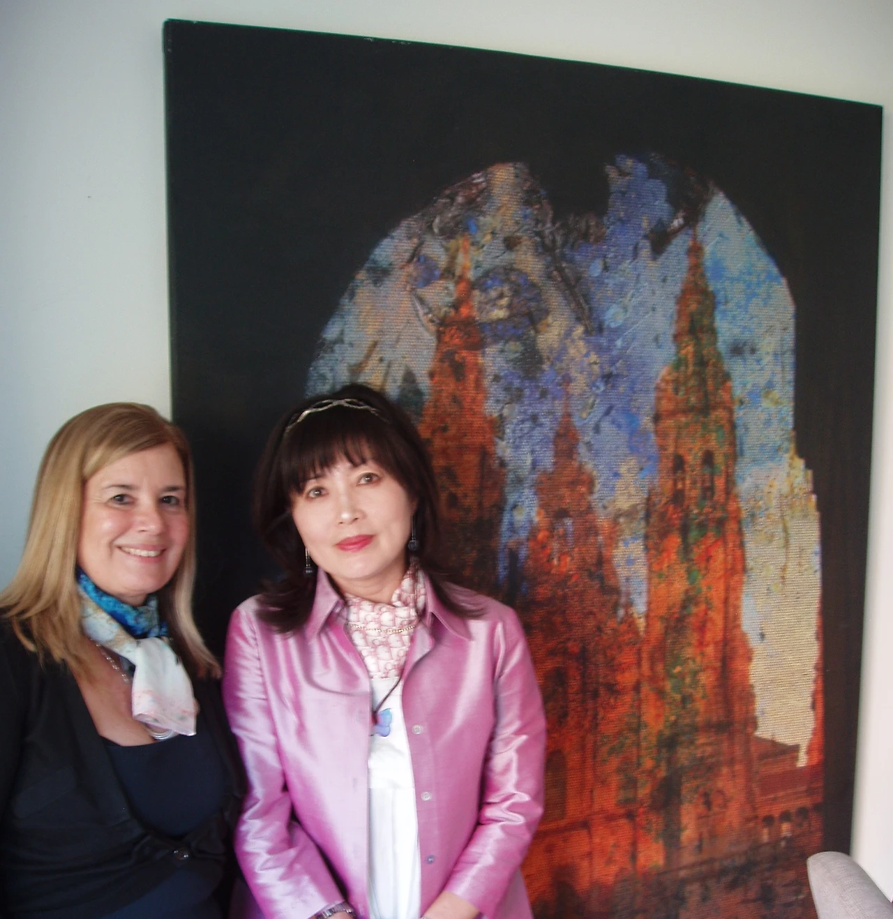 그녀의 여러 작품 중에 특히 프랑스 남불 피레네 산맥 인근 루르드에서 묻었다가 몇 년 후에 꺼냈다는 그림이 인상적이었다. 땅속에서 갖가지 광물질과 어우러져 독특한 빛을 내는 그림엔 푸른빛이 어리는 장미가 도드라져 보였다. <푸른 장미>라는 이 그림은 코엘료의 신간 <알레프>에도 소개되었고 화가 자신이 무척 애착을 느끼는 작품이라며 미소 지었다.