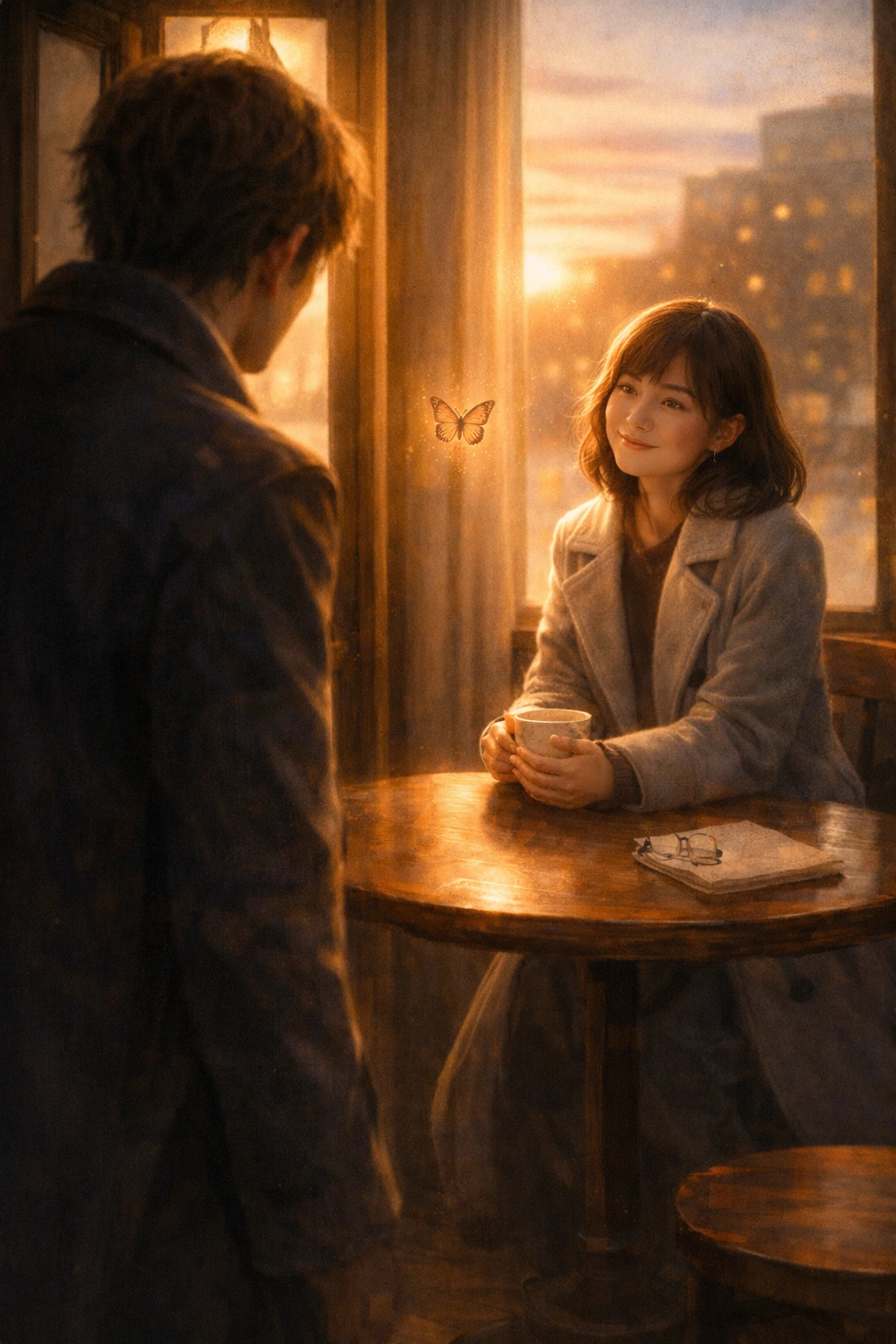 창밖에는 나비 한 마리가, 붉은 석양 속으로 천천히 사라지고 있었다.