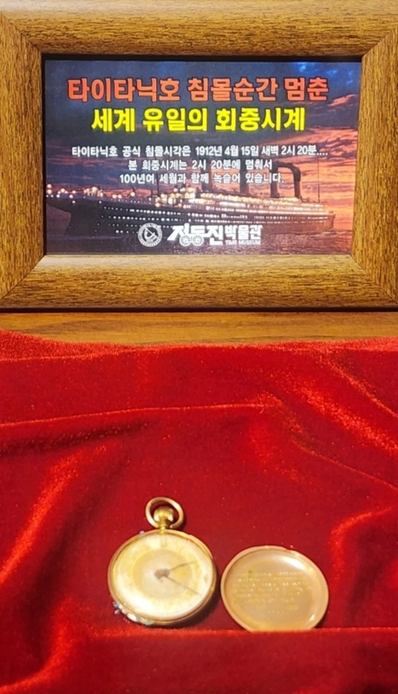 중세시대 영화에서 남성들이 조끼 주머니에서 고상하게 꺼내 들었던 회중시계다. 1912년 4월 15일 새벽 2시 20분, 100여 년이 지난 지금도 2시 20분을 가리키고 있다.