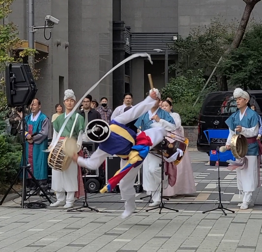 어렵다는 상모 돌리기도 모자라 온몸을 틀며 빙글빙글 돌아댄다.