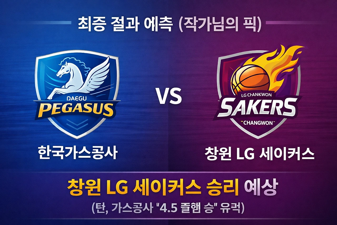 최근 맞대결이 1점 차 박빙이었고, 가스공사 신인들의 기세가 살아나고 있다는 점을 고려하면 가스공사가 경기 막판까지 LG의 간담을 서늘하게 만드는 '4.5 플핸승' 시나리오가 매우 강력해 보입니다.