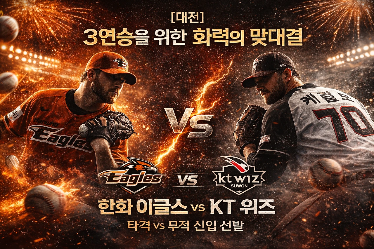 [Situation] 개막 2연승 팀끼리의 맞대결입니다. 한화는 강백호·손아섭이 합류하며 리그 최강의 화력을 뽐내고 있고, KT는 김현수·최원준 영입 효과로 타선의 응집력이 절정에 달해 있습니다.