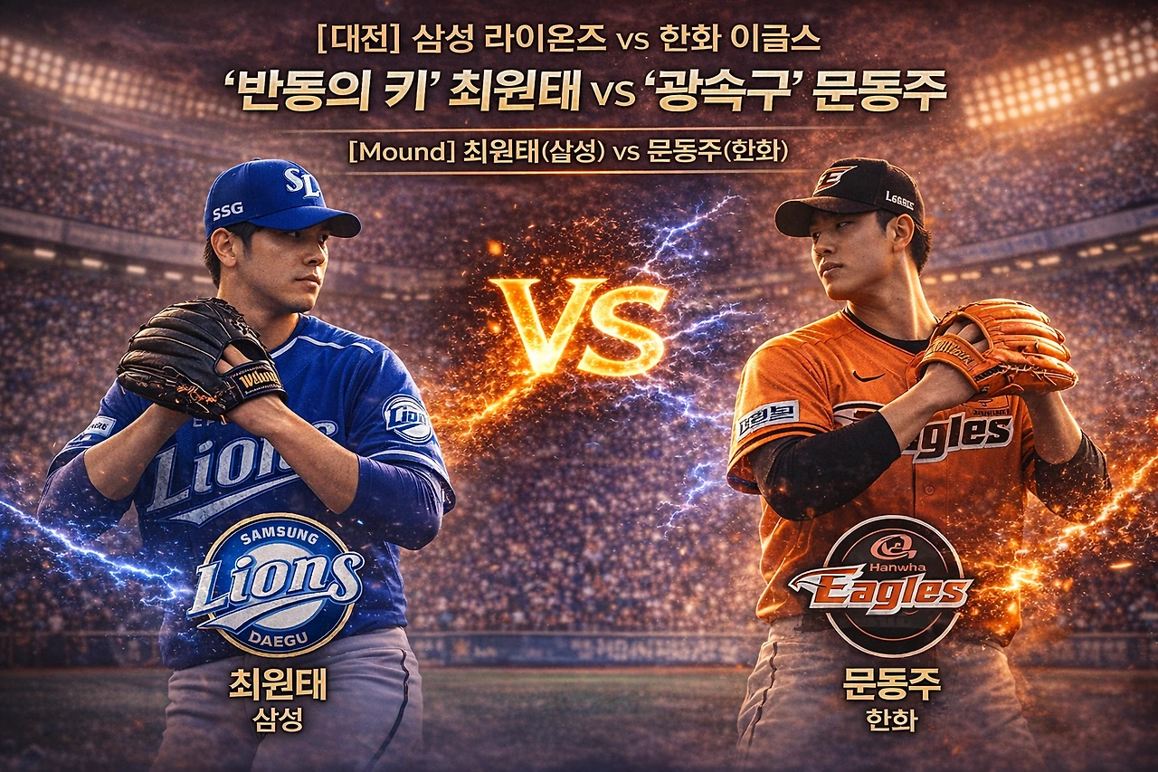 1. [대전] 삼성 라이온즈 vs 한화 이글스: ‘반등의 키’ 최원태 vs ‘광속구’ 문동주