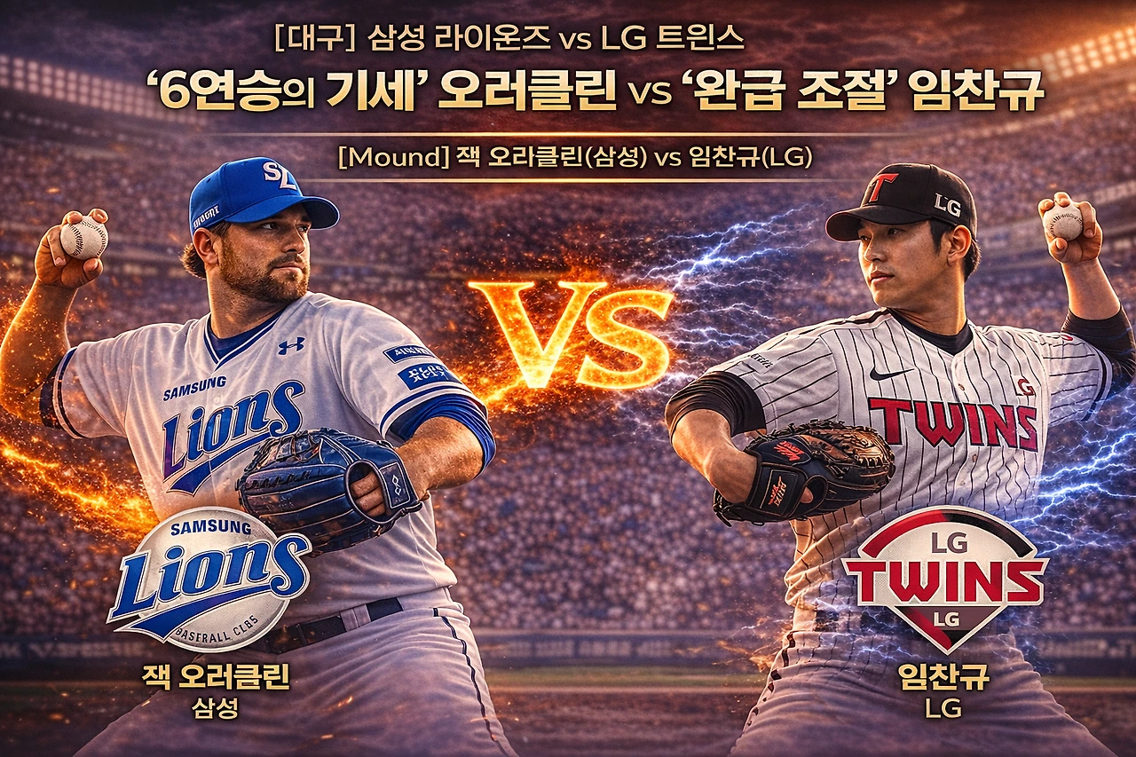 1. [대구] 삼성 라이온즈 vs LG 트윈스: ‘6연승의 기세’ 오러클린 vs ‘완급 조절’ 임찬규