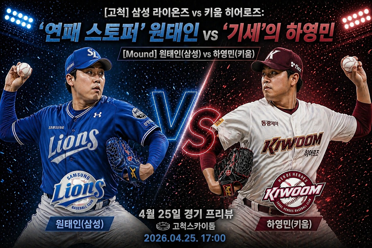 1. [고척] 삼성 라이온즈 vs 키움 히어로즈: ‘연패 스토퍼’ 원태인 vs ‘기세’의 하영민