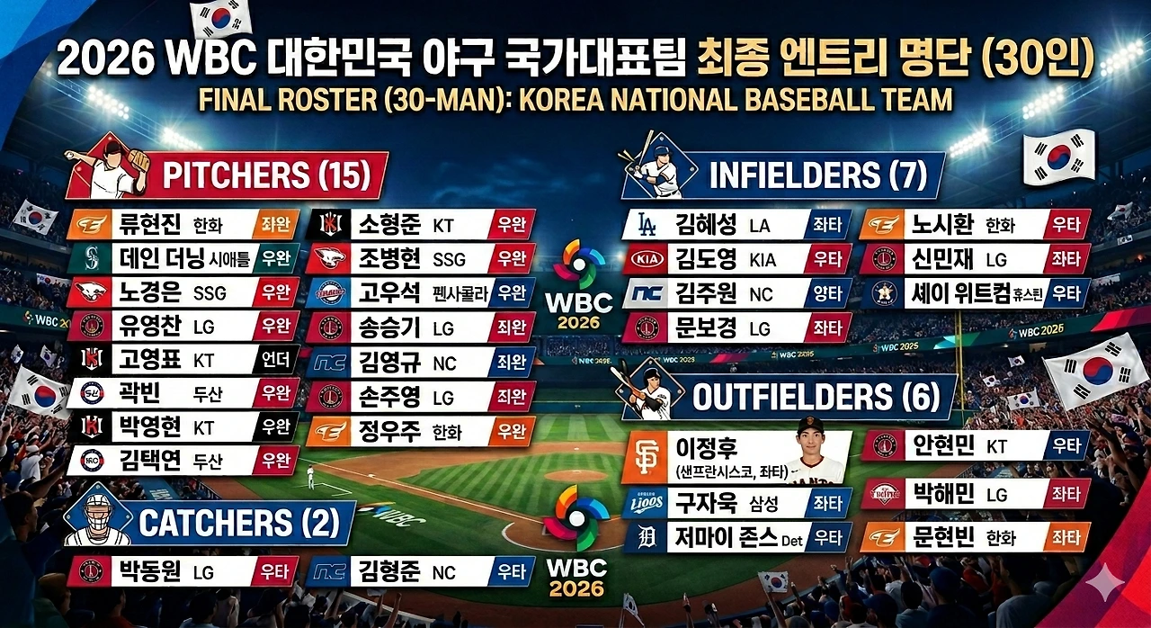 K-내야의 자부심: 김하성(애틀란타), 송성문(샌디에이고), 토미 에드먼(LA 다저스)의 빈자리는 김주원(NC), 문보경(LG), 노시환(한화) 등 리그 최고의 젊은 피들이 메우며, '잃을 게 없다'는 패기보다 '실력으로 뺏겠다'는 독기를 보여주고 있습니다.