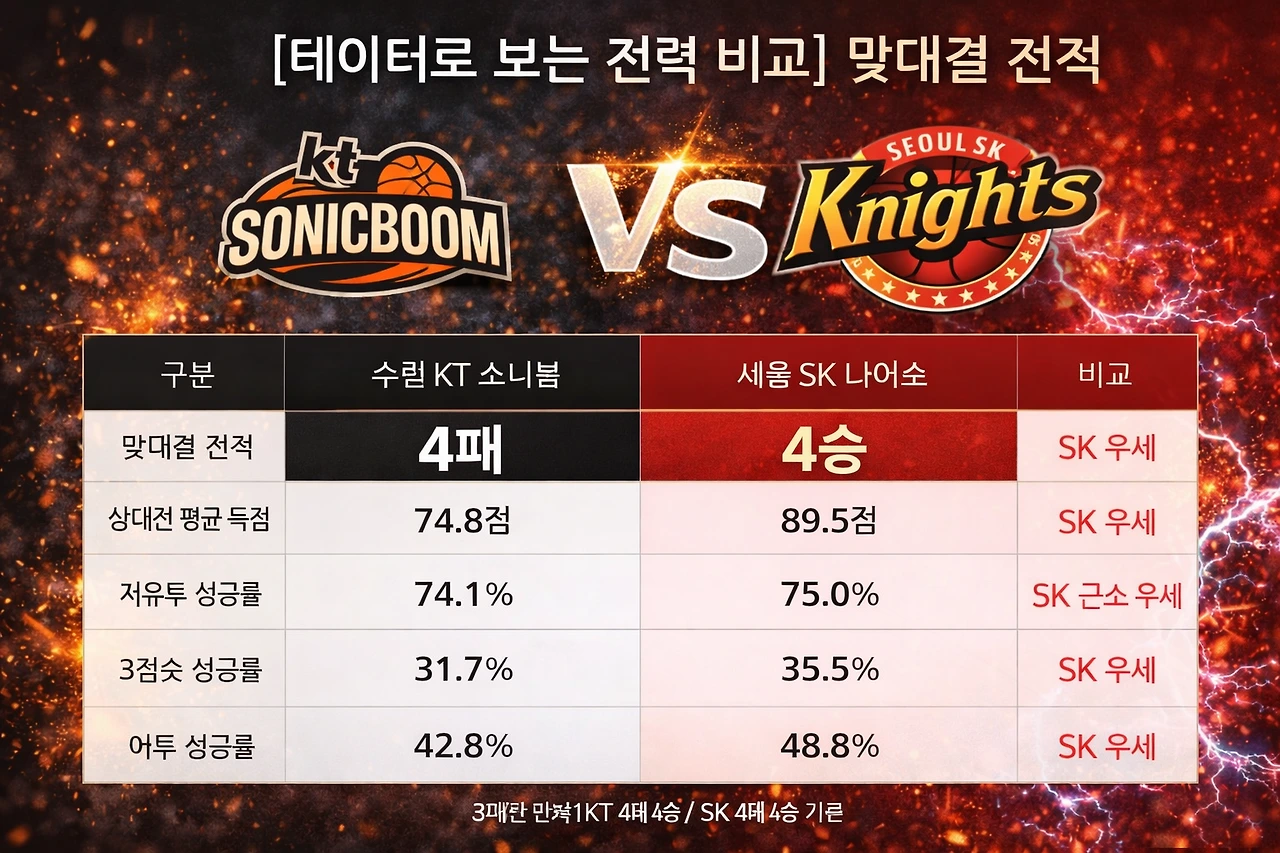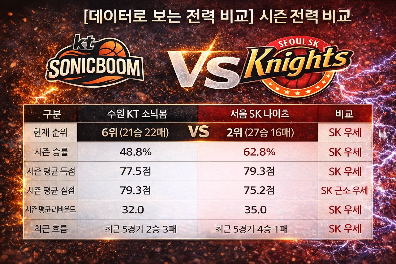 "수원 KT 소닉붐 아레나의 림은 오늘 잔인한 시험대에 선다. 1년 넘게 이어온 천적 관계를 청산하기 위해 부상에서 돌아온 전사들을 소집한 KT, 그리고 상대의 기둥이 뽑힌 골밑을 자신의 '놀이터'로 만들려는 SK의 자밀 워니. 통계는 SK를 가리키지만, 공은 둥글고 홈 팬들의 함성은 뜨겁다."