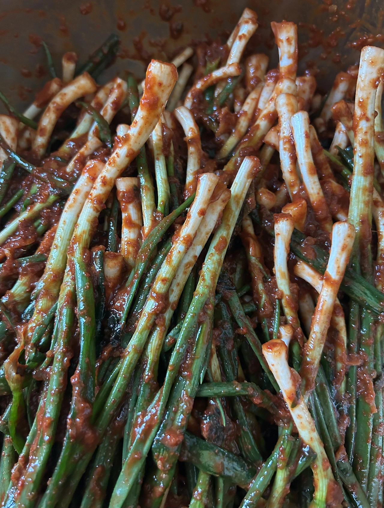 다듬고 씻고 물기를 뺀 뒤 양념을 버무리자, 코끝을 찌르는 냄새가 불편한 속내를 겨우 가라앉혔다. 모양만큼은 그럴싸한 파김치가 완성되었지만, 이런 채소를 판 데 대한 실망감에 나 역시 파김치가 된 기분이었다.
