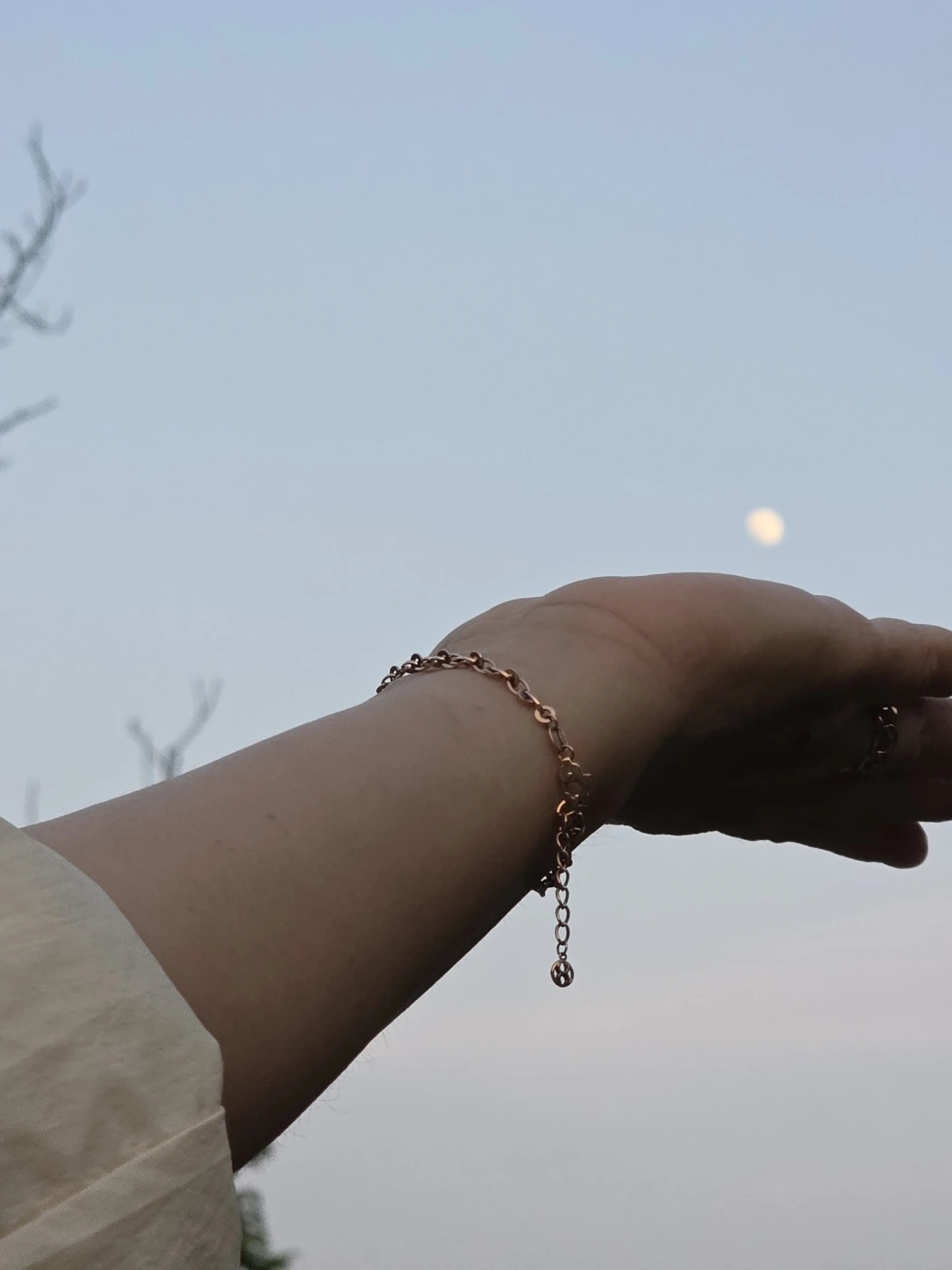 그러다 무심코 고개를 들어 올려다보니, 달은 내 등 뒤에서 조용히 나를 바라보고 있었다. 비록 아파트 틈새에 끼어 온전히 드러나지 않았지만, 오늘의 길동무였음을 알리듯 은은한 인사를 남기고 있었다.
