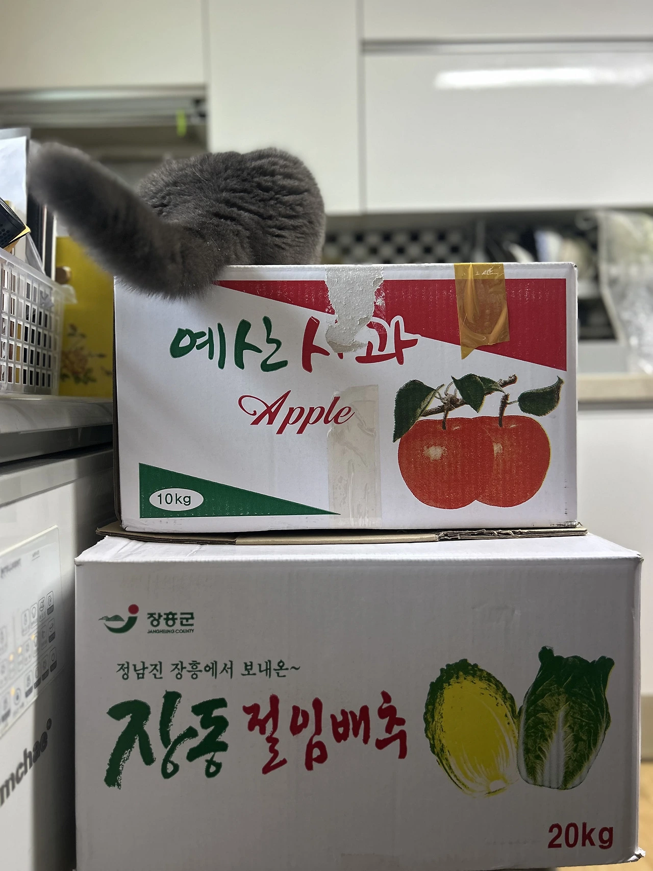 하루 사이에 집 앞에 놓인 택배 상자 두 개.
