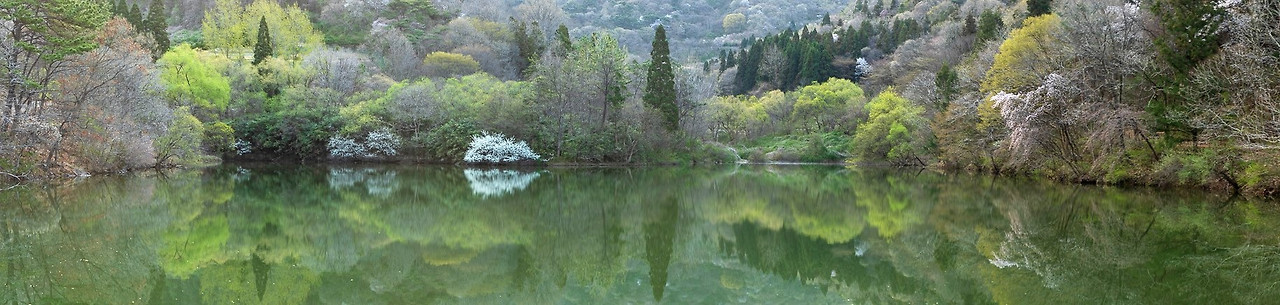 카메라를 걸쳐 놓고 자세히 보았다. 서로 겹쳐 있는 듯한 나무들도 저마다의 색깔을 뽐내며 조화를 이룬다. 연녹색 신록과 벚꽃이 어우러진 풍경은 마치 한 폭의 채색화 같다. 그 누구도 그대로 재현할 수 없는 자연이 빚어낸 걸작이다. 화순 세량지가 남도 풍경 10경 중 하나이다.