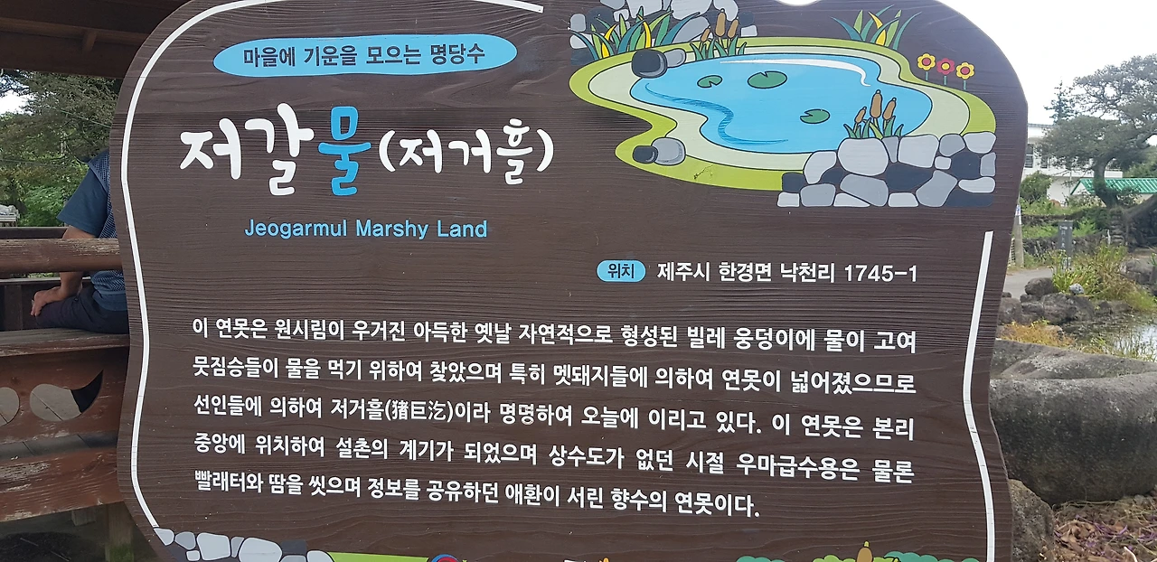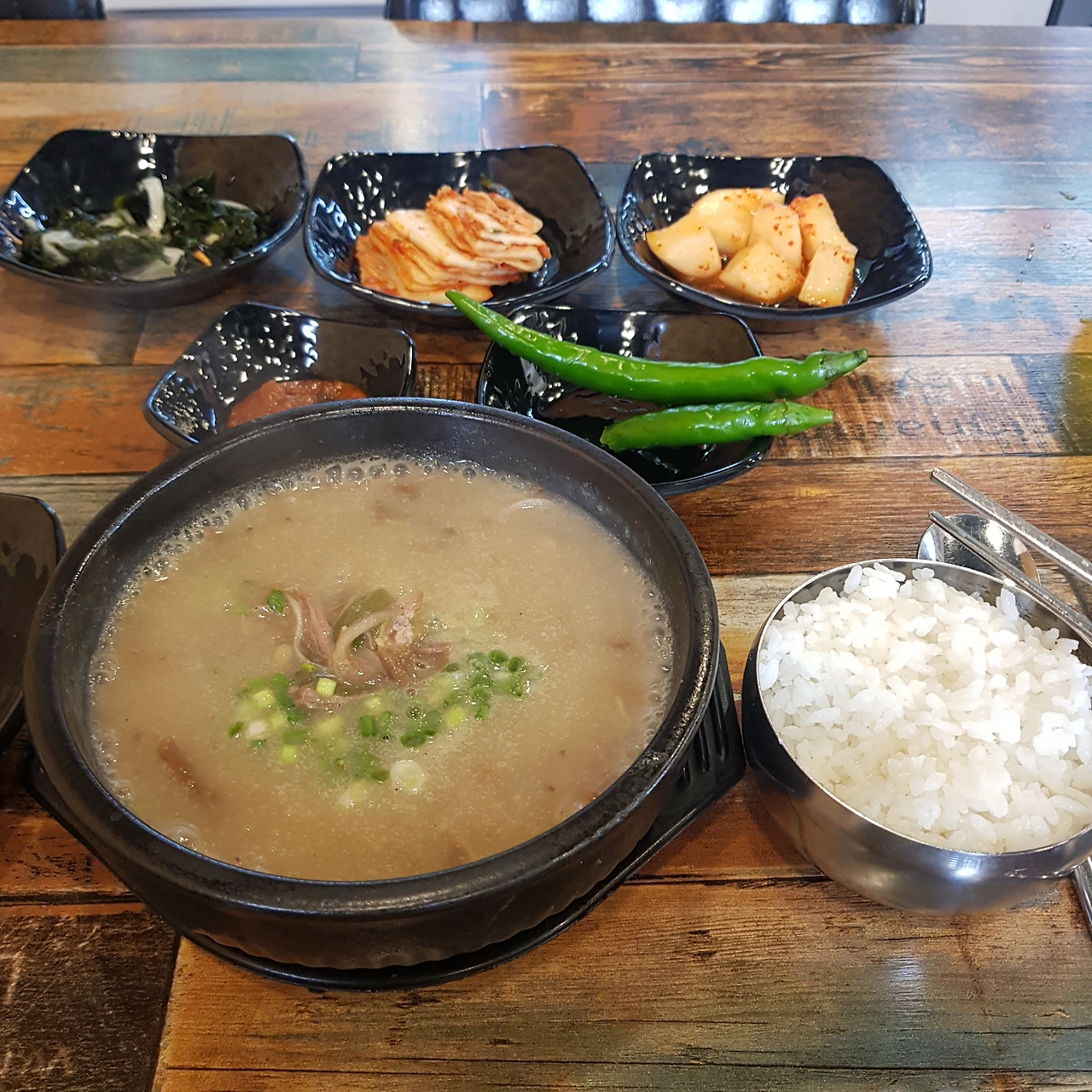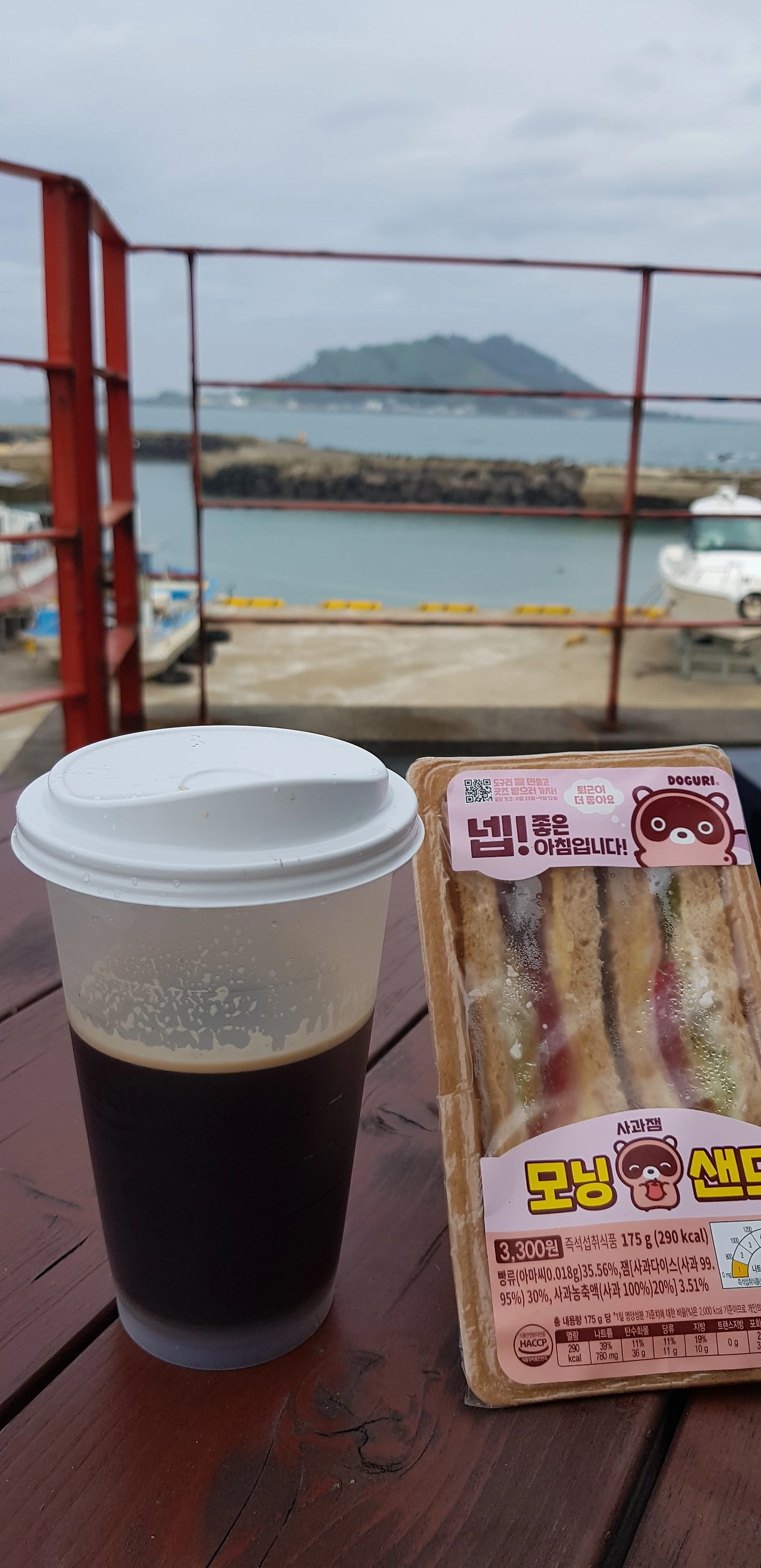 마을로 내려와 종점 스탬프를 찍고 버스 시간을 확인해 보니 40분 정도의 여유시간이 생겼다. 아침, 점심으로 편의점 식사를 했더니 이번에는 제대로 된 식사가 필요해서 길 건너 식당에 들어갔다. 왠지 오늘 여정 중에 지나친 고사리 숲이 생각나서 '고사리 육개장'을 주문했다. 하지만 내가 예상하던 육개장 국물이 아니었다. 마치 해물 누룽지탕에 녹말이 들어간 것처럼 약각 걸쭉해서 실례를 무픕쓰고 사장님께 물어봤다. "사장님, 혹시 육개장에 녹말이 들어가나요?" , "아니요, 제주도 육개장에는 메밀이 들어갑니다." 해초류가 들어간 제주도 음식인 '몸국'에도 육개장처럼 메밀이 들어가 걸쭉하다는 사장님의 설명이다. 그러고 보니 식사 전에 제공 된 노란색 물도 생수가 아닌 메밀 물이었다. 왠지 더 건강해진 느낌이었다. 물어보길 잘했다는 생각이 든다.