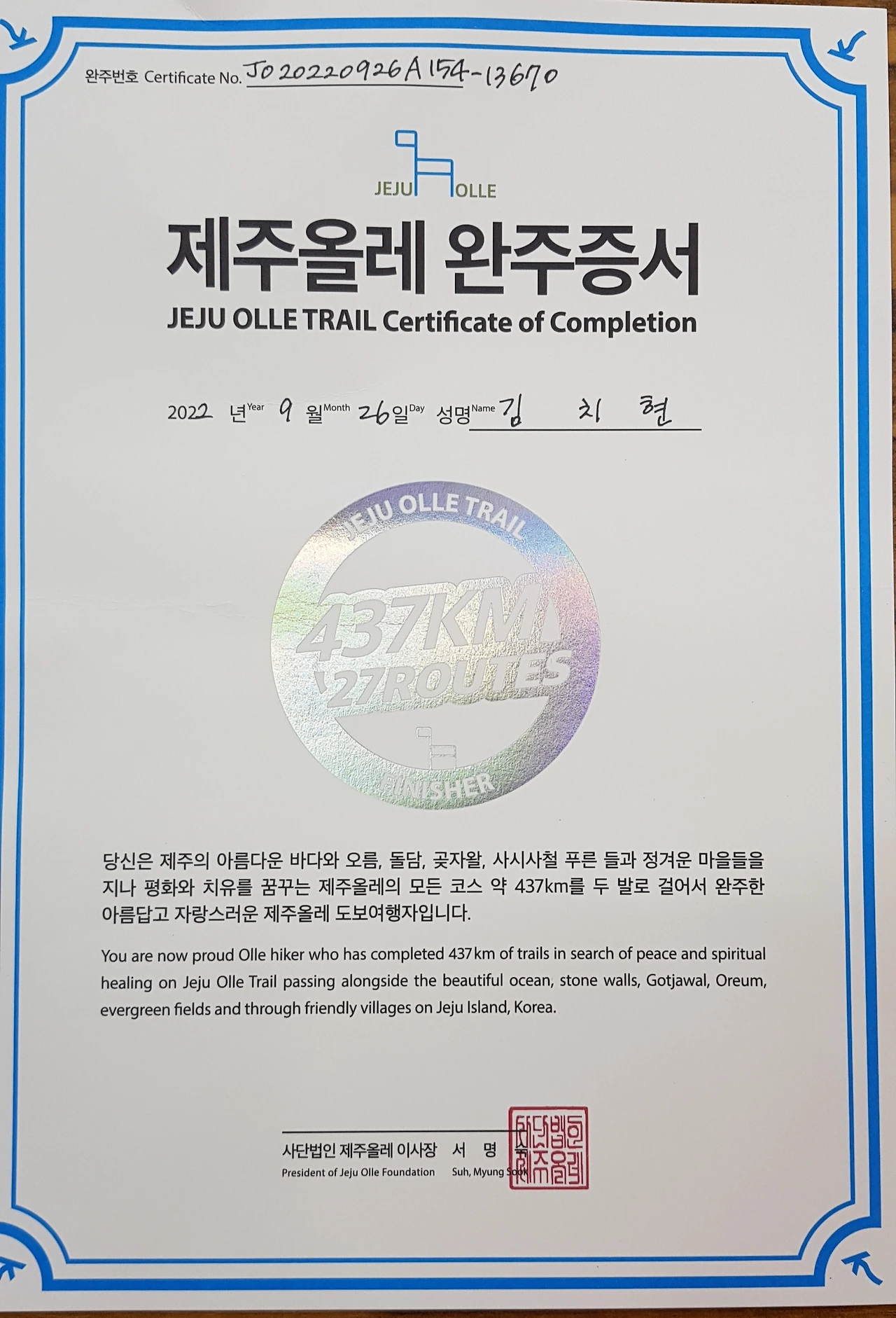 이렇게 나의 '제주 한 달 살면서 올레길 걷기'는 마무리가 되었다.
