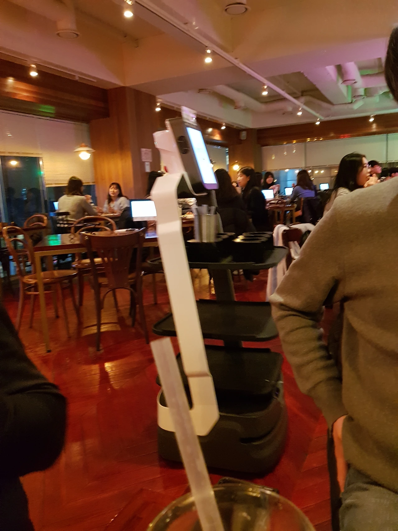 평소 멕시코 음식을 맛볼 기회가 적어서 이때다 싶어 여러 종류의 음식을 주문했다. 낙원 파히타, 쉬림프 퀘사디아, 아보카도 샐러드, 토르티야, 치즈 프라이즈 접시가 테이블로 전달되었다. 테이블과 테이블 사이로 연신 배달 로봇이 서빙을 하고 있었다. 말로만 듣던 서빙 로봇을 실제로 본건 처음이라서 신기하기도 했다.