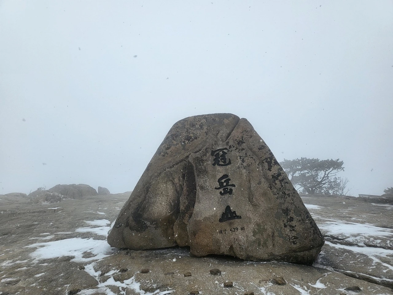 헉헉 거리는 숨을 몰아쉬며 정상에 올라 인증석을 배경으로 단체사진과 개인 사진을 어떤 기다림도 없이 마구마구 찍었다. 우리 일행 말고는 아무도 없었기 때문이다. 하산할 때는 내린 눈으로 인해서 더욱 산행로가 미끄러웠다. 다행히 아무 사고 없이 안전하게 원점 회기로 날머리를 통과했다. 나의 삐뚤어진 마인드는 새로운 경험을 만들어내고 나의 삶을 더욱 풍성하게 해 주었다. 하루가 보람차다. 오늘이 평일이어서 더 행복하다.