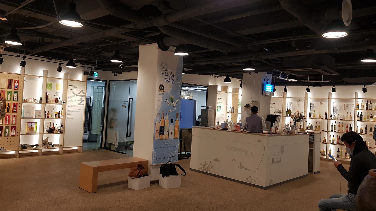 며칠뒤 방문한 '전통주 갤러리'는 지하철 안국역에서 가까웠다. 전통주 시음행사이다 보니 차를 가져갈 수도 없어서 편안하게 지하철을 이용했다. 갤러리는 '한식문화공간'이라는 건물의 1층 안쪽에 위치해 있었다. 갤러리는 입구에서부터 멋지게 디자인된 전통주들이 술에 대한 설명들과 함께 전시되어 있다. 한쪽에는 스탠딩으로 6명 정도 둘러서서 시음을 할 수 있도록 테이블도 배치되어 있어 나를 기다리고 있었다.