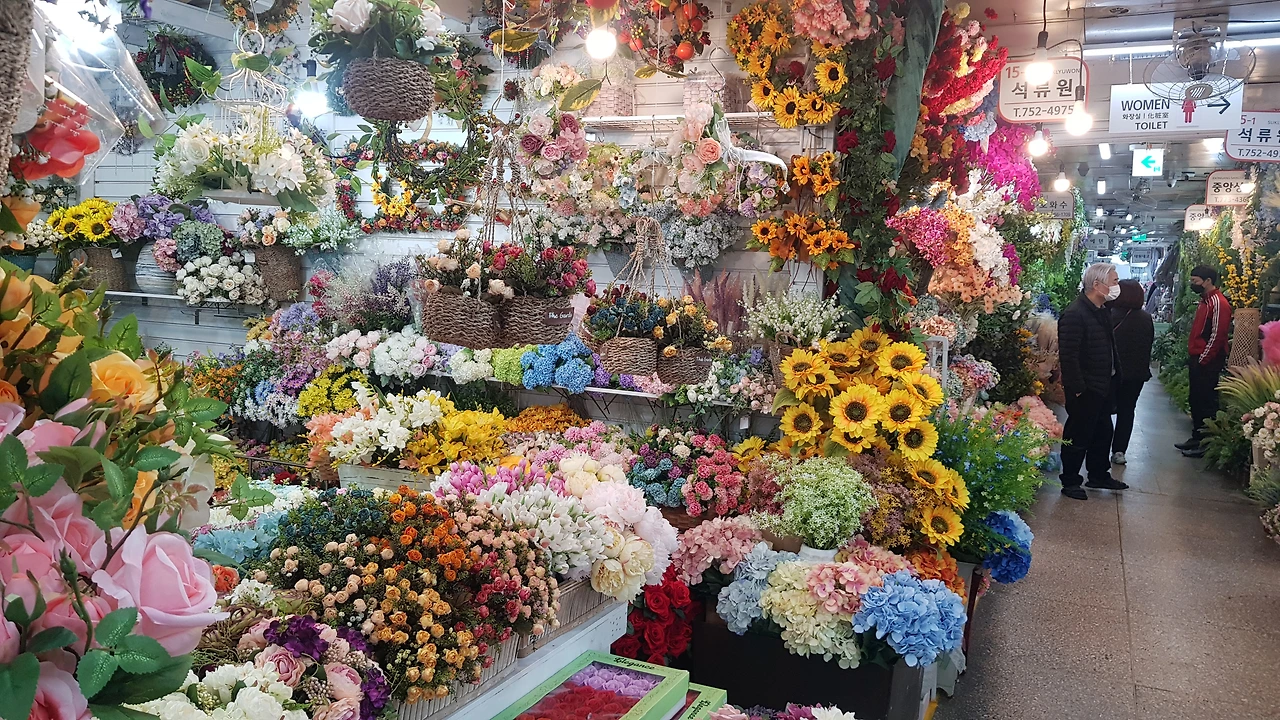 점심식사 후에 고불고불한 미로 같은 길을 통과해서 남대문시장 꽃상가로 이동했다. 가는 길에 얼핏 예전에는 '도깨비 상가'라 불리던 수입도매상가의 간판이 눈에 들어온다. 작년에 이맘때 즘에 돌아가신 부친의 단골가게들이 그곳에 있다. 나도 몇 번 부친을 따라가 본 적이 있다. 1970년대 이곳의 물건들은 대부분 미군부대로 부터 비공식적인 유통을 통해서 공급되었었다는 이야기가 있었는데, 그것이 사실인지 아닌지는 모르겠다.