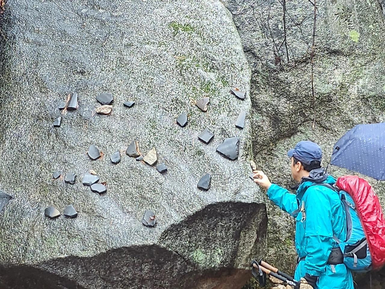 산행 중에 마주치는 조그마한 돌탑은 누군가의 소망이 녹아있다. 여기저기 낮게 쌓여있는 돌탑 무더기 사이로 나도 몇 개의 돌을 쌓아 소망을 빌어본다. 한쪽에는 넓고 평평한 바위면에 돌들이 붙어있다. 넓적한 돌을 살며시 바위면에 붙이면서 다시 한번 새해 소망을 빈다. 왠지 올해는 좋은 일들만 생길 거 같은 기분이다.