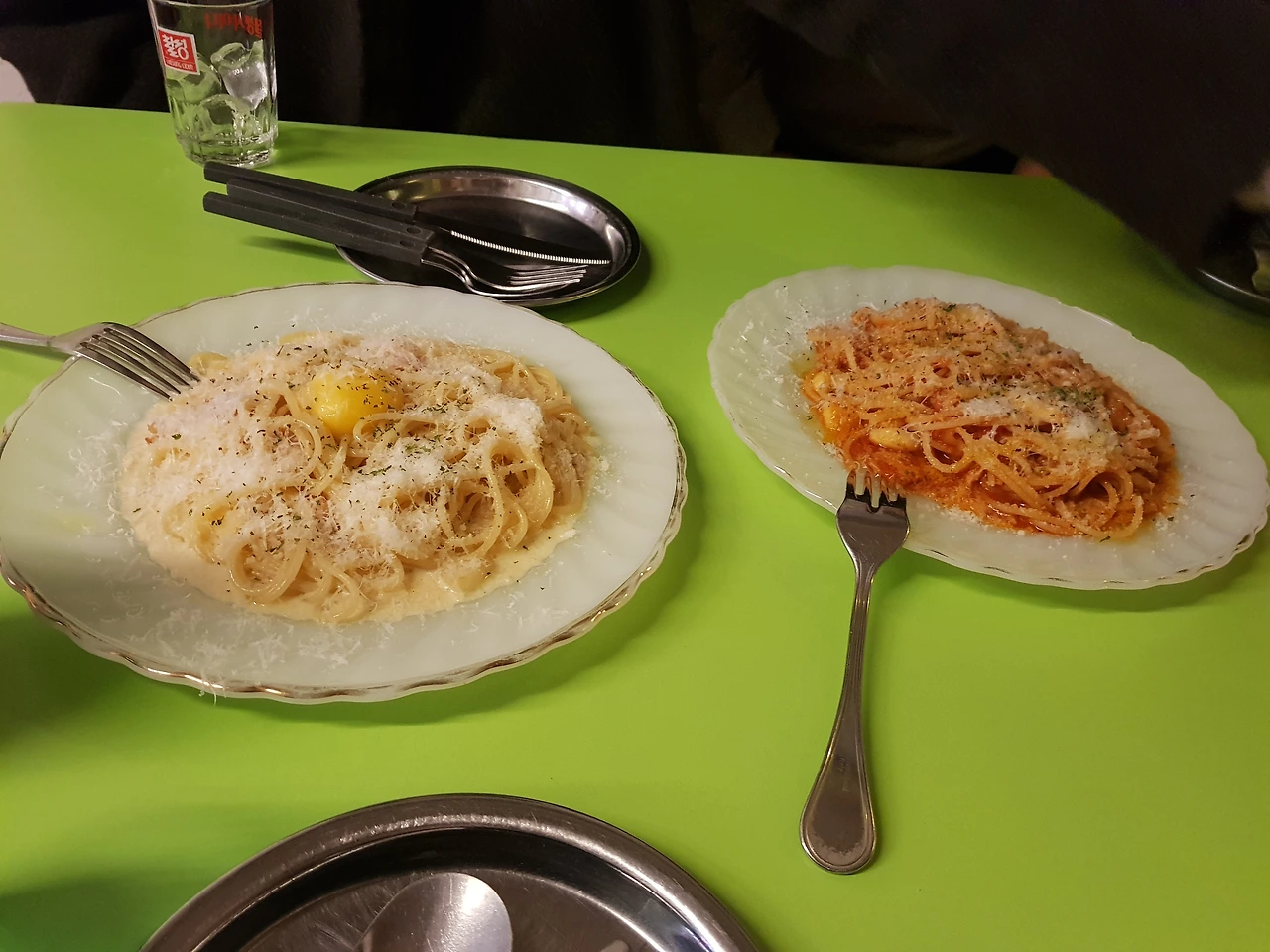 식당을 들어서니 테이블이 서너 개 있고 식당 안쪽 끝에는 피자를 구울수 있는 화덕 안에 시뻘건 불꽃이 타오르고 있었다. 다행히 우리 일행이 첫 손님이었고 아들은 빠르게 주문을 했다. '까르보나라', '아마트리치아나(토마토)' 스파게티 와 함께 ' 뽀모도리니 로마나(방울토마토)', '알트로 베르데(루꼴라)' 피자. 솔직히 나는 발음 하기도 어려운 이태리 음식들이다.