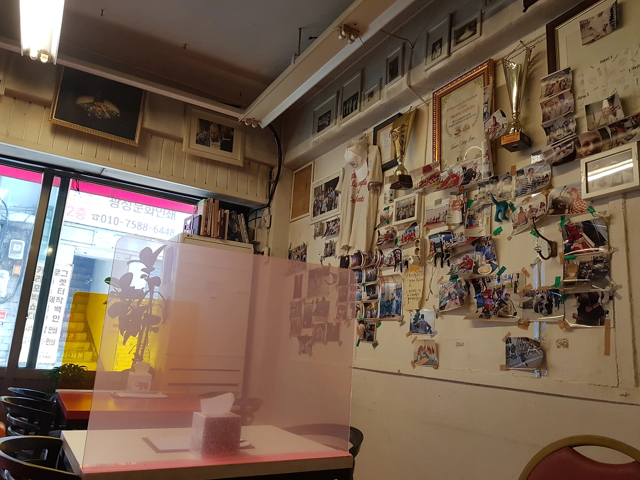 그런데 식당 간판이 이상했다. '홍복 문화사'라는 인쇄소 간판이 알루미늄 미닫이 식당문 위에 덩그러니 걸려 있는 것이다. 자세히 보니 미닫이 유리창 위에 빨간 글씨로 '경일옥 Pizzeria'이라는 글자가 어렴풋이 보였다. 식당 앞에는 노란색 싸구려 플라스틱 의자 두 개가 놓여있는 걸로 봐서 웨이팅이 자주 발생하는 음식점이라는 것을 짐작할 수 있었다.