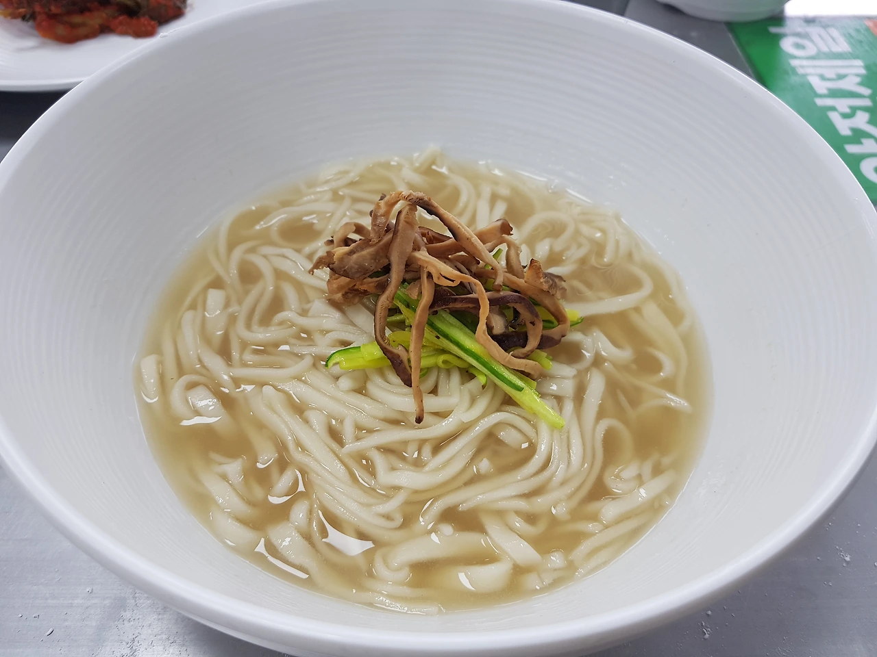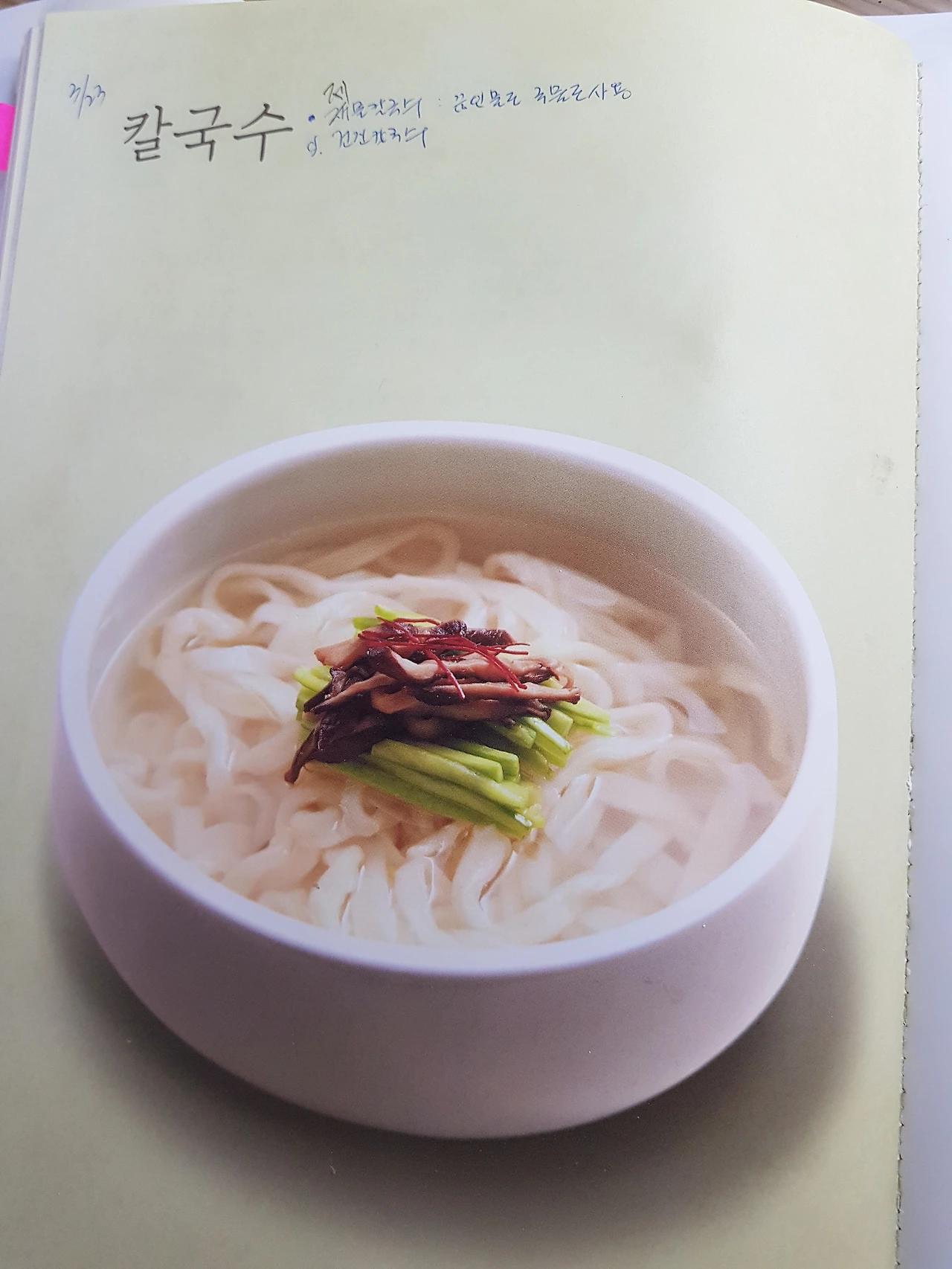 육수의 건더기는 채에 걸러 버려지고 육수(500ml)만 냄비에 담기고 그 속으로 나도 설설 히 풀리면서 '풍덩, 풍덩' 다이빙을 한다. 국간장과 약간의 소금이 추가되고 나의 살색이 반쯤 투명해질 즈음 면발이 건져 저서 국수그릇중간에서 정신을 가다듬니다. 냄비에 있던 육수가 내 위에 부어지고 그 위에 애호박과 표고버섯 그리고 실고추가 자리를 잡는다. 커다란 나무젓가락이 나를 들어 올려 괴물의 입속에 쑤셔 넣는다. "사람살려~, 아니 밀가루 살려~"