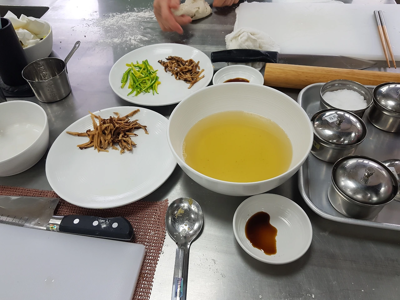 괴물에게 갑자기 납치된 나는 갑자기 채에 걸러지고 1컵(200ml) 정도가 덜어서 커다란 그릇에 담기고 미지근한 물(4 큰스푼, 60ml), 소금과 함께 반죽이 되었다. 괴물은 한참을 치데더니 비닐봉지에 넣고 이십분간 숙성을 시킨다. 저 멀리 냄비에는 멸치, 대파, 마늘, 양파가 보글보글 센 불에서 끓기 시작하더니 중불로 바뀌고 육수의 색깔이 투명색에서 황색으로 변하고 있다. 반대쪽 도마 위에는 애호박과 표고버섯이 흐르는 수돗물에 목욕후에 대기를 하고 있다.