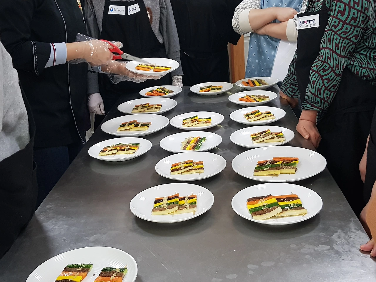 고깔을 뗀 잣을 부수어 고명으로 중앙에 뿌려주면 완성된다. 완성된 모습이 정사각형에 가까우면 한식조리기능사 시험 합격에도 가까워진다. 줄 맞춰서 차렷자세를 취하고 있는 화양적의 가지런한 모습이 피 끓는 젊은 시절의 추억을 떠오르게 한다. 파도가 몰아치는 어느 바닷가 펜션에서 고급진 화양적을 안주삼아 따뜻한 정종 한잔하고 싶다.