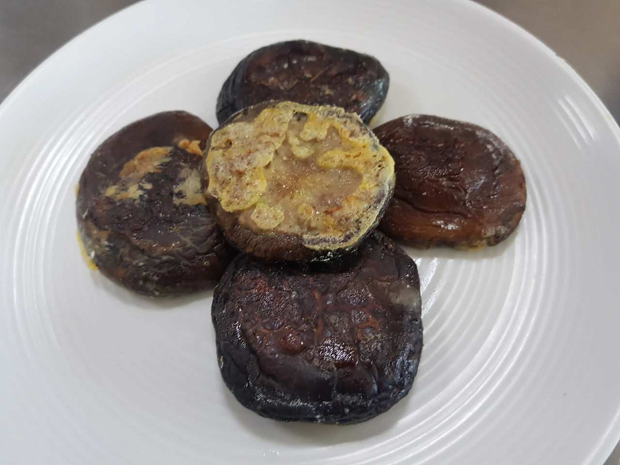 소가 들어간 면에만 밀가루, 달걀물을 순서대로 묻힌다. 식용유를 두른 팬에 달걀물이 묻은 면을 약불에서 완전히 익히고 뒤집어 타지 않게 살짝 지진다. 표고전이 요리조리 기능사 시험에 출제되면 평가기준은 3가지이다. '표고버섯에 유장처리를 했는지, 놀부처럼 소를 너무 많이 넣지는 않았는지, 고기소가 버섯에서 분리되지는 않았는지'이다. 무사하게 완성그릇을 제출하고 나니 불편했던 마음이 조금 누그러졌다.