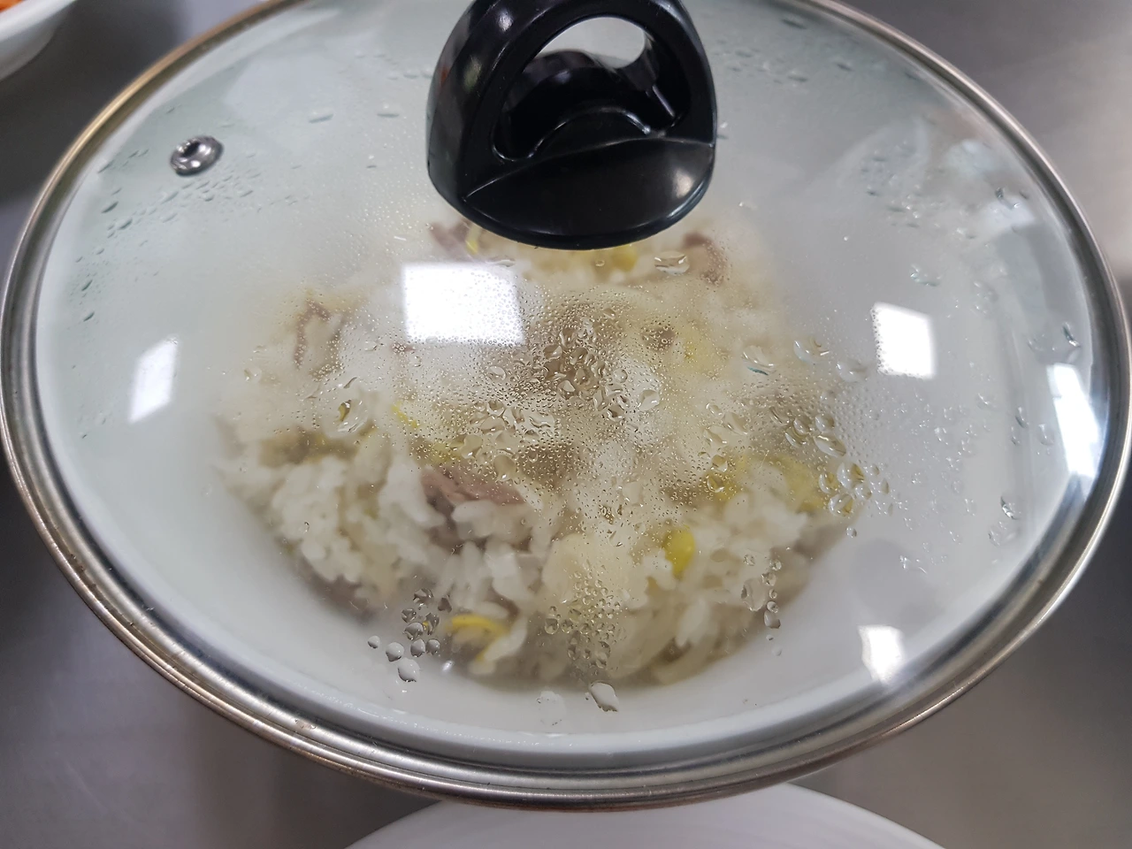 콩나물밥은 밥을 익힐 때 껍질과 꼬리를 제거한 콩나물과 양념한 소고기를 밥 위에 올려주면 된다. 다만, 콩나물에 물기가 있다 보니 물을 평소보다 적게 넣어야 한다. 전반적으로 난의도가 높은 요리는 아니지만 그래도 긴장을 놓을 정도는 아니다. 첫 번째 결과물은 다행이었지만 두 번째는 뜸이 안 들어 품평회 시간까지도 뚜껑을 덮어 놓아야 했다. 세 번째는 소고기에 간장 양념이 많이 베어 밥이 전체적으로 검은색으로 익어버렸다.