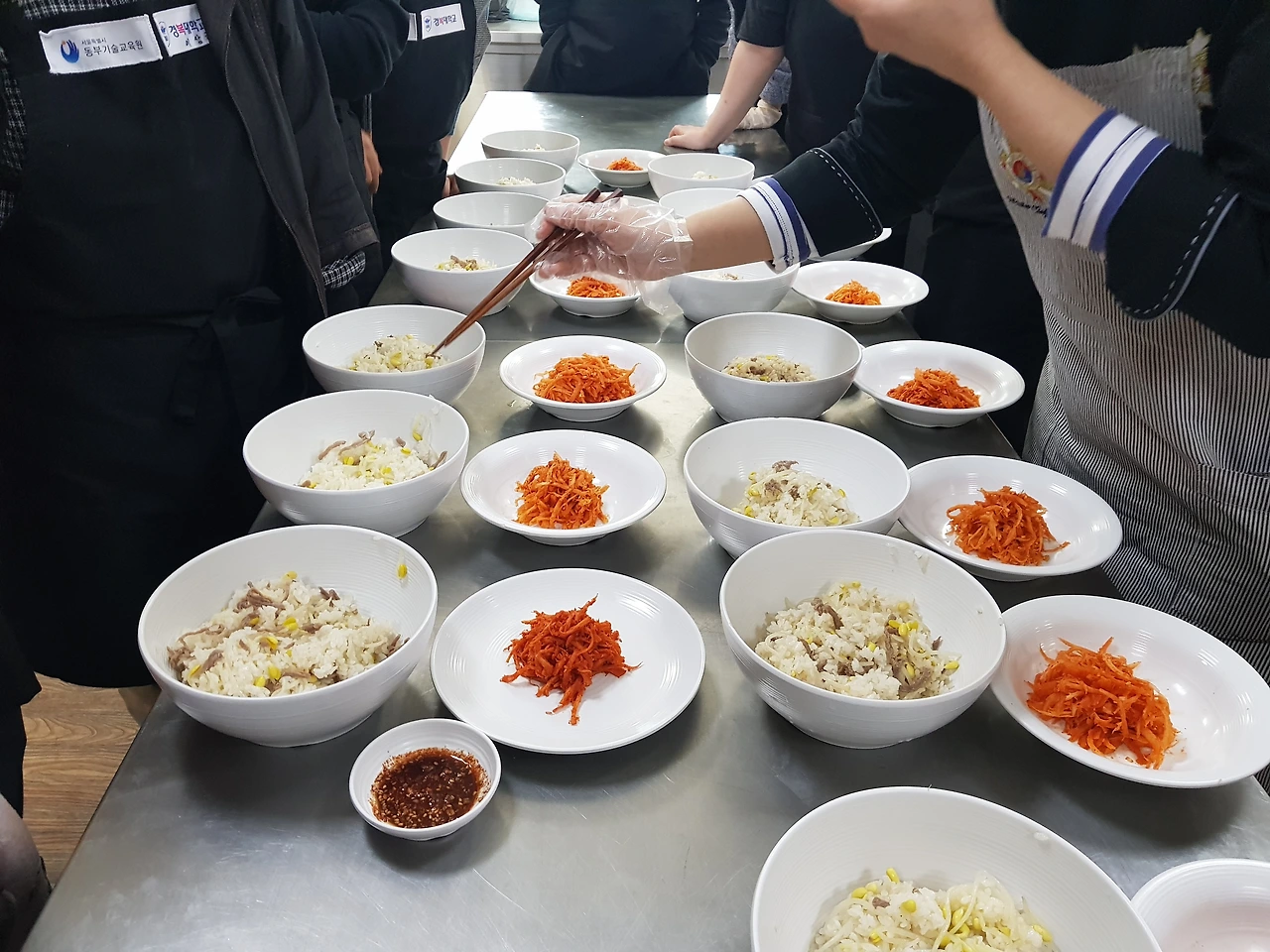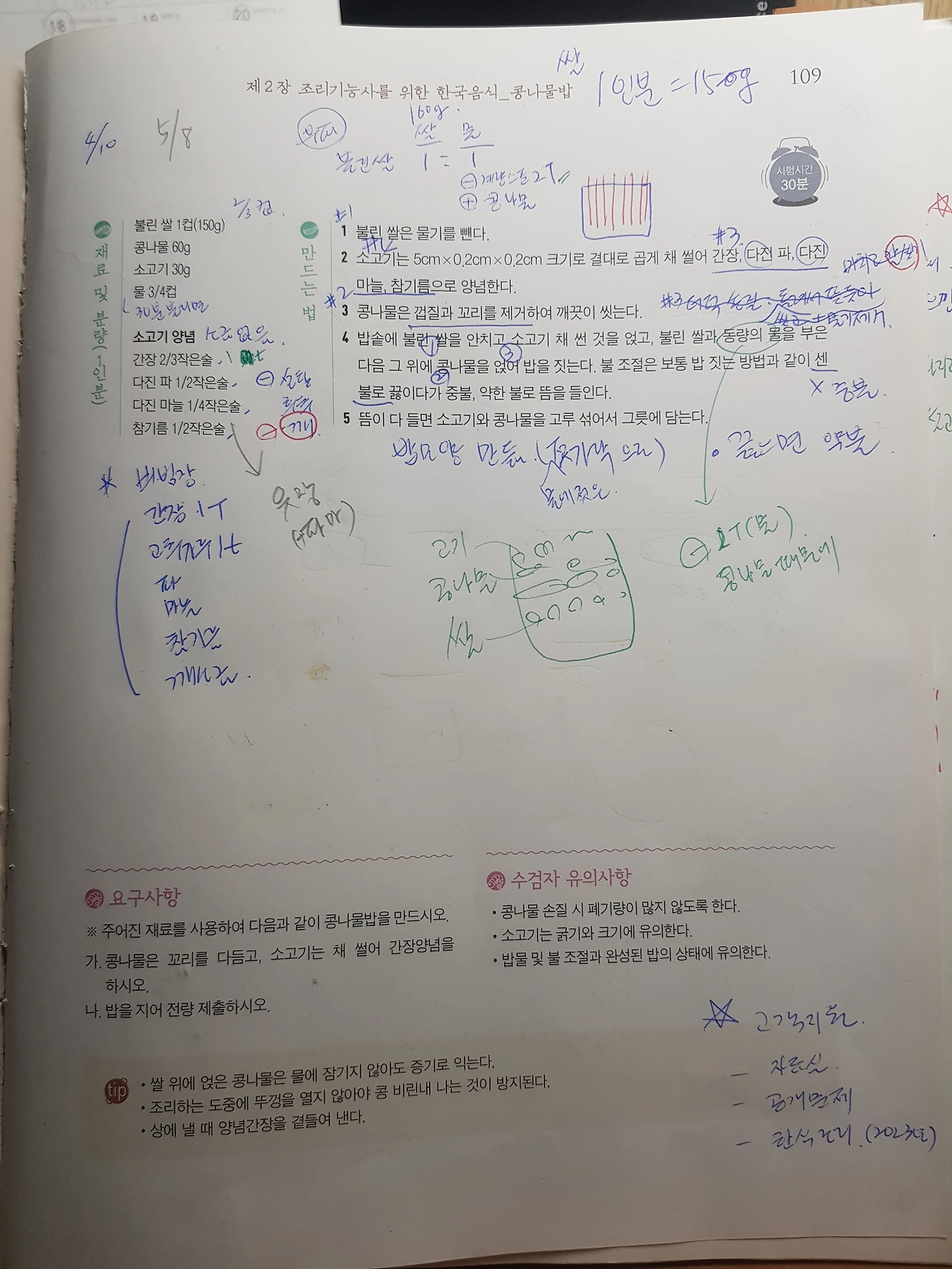 얼마 전 까만 비빔밥을 만들고 난 후 며칠간 밥 짓기를 연습하고 나서야 더 이상 밥을 태우지 않는다. 물론 아직까지 조리 실습실에서 밥 타는 냄새가 나면 다른 수강생들이 다들 나를 쳐다보긴 해도 말이다. 그럼 나는 강력히 부인한다. "나, 아니야~". 어찌 되었든 이제는 더 이상 밥을 태우지 않는다. 콩나물밥도 밥 짓기는 어는 정도 자신이 생겼다.