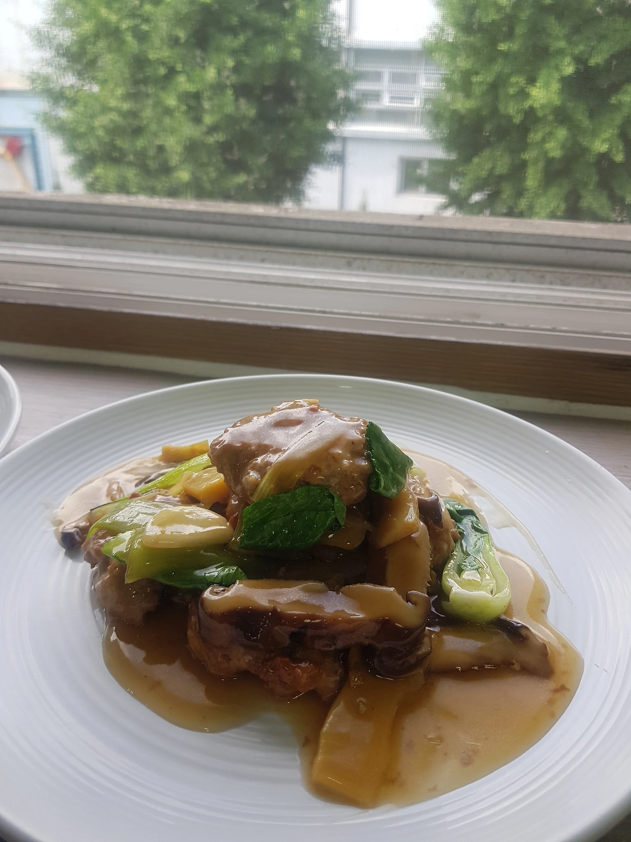 요리는 향신채(마늘, 생강, 대파)를 편 썰기하는 것으로 시작하고 다져진 고기에는 간장, 소금, 청주, 검은 후추가루로 밑간을 한다. 고기에 추가적으로 달걀흰자(1t), 전분(1t)를 섞어 손가락을 봉긋하게 모아 한쪽방향으로 힘차게 돌려 어묵반죽처럼 만든다. 표고버섯, 죽순, 청경채를 편썰고 반죽한 고기를 손에 쥐고 엄지와 검지를 동그랗게 말아 위쪽으로 짜내면서 숟가락으로 공모양을 만들어 떠낸다. 중식에서만 볼수 있는 광경이다.