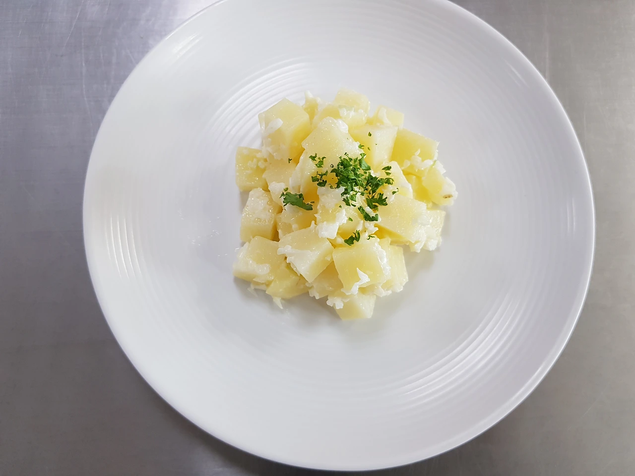 포테이토 샐러드를 만드는데 주어지는 시간은 30분이다. 그나마 조리과정에 비하면 충분한 시간이다. 요리에 사용되는 재료도 간단하다. 감자, 양파, 마요네즈 그리고 요리 위에 뿌려지는 파슬리와 간을 맞추기 위한 소금과 흰 후춧가루가 전부이다. 조리과정도 감자를 정육면체로 잘라서 삶아내고 양파를 다져서 마요네즈로 섞어주고 소금과 후춧가루를 뿌리면 된다.