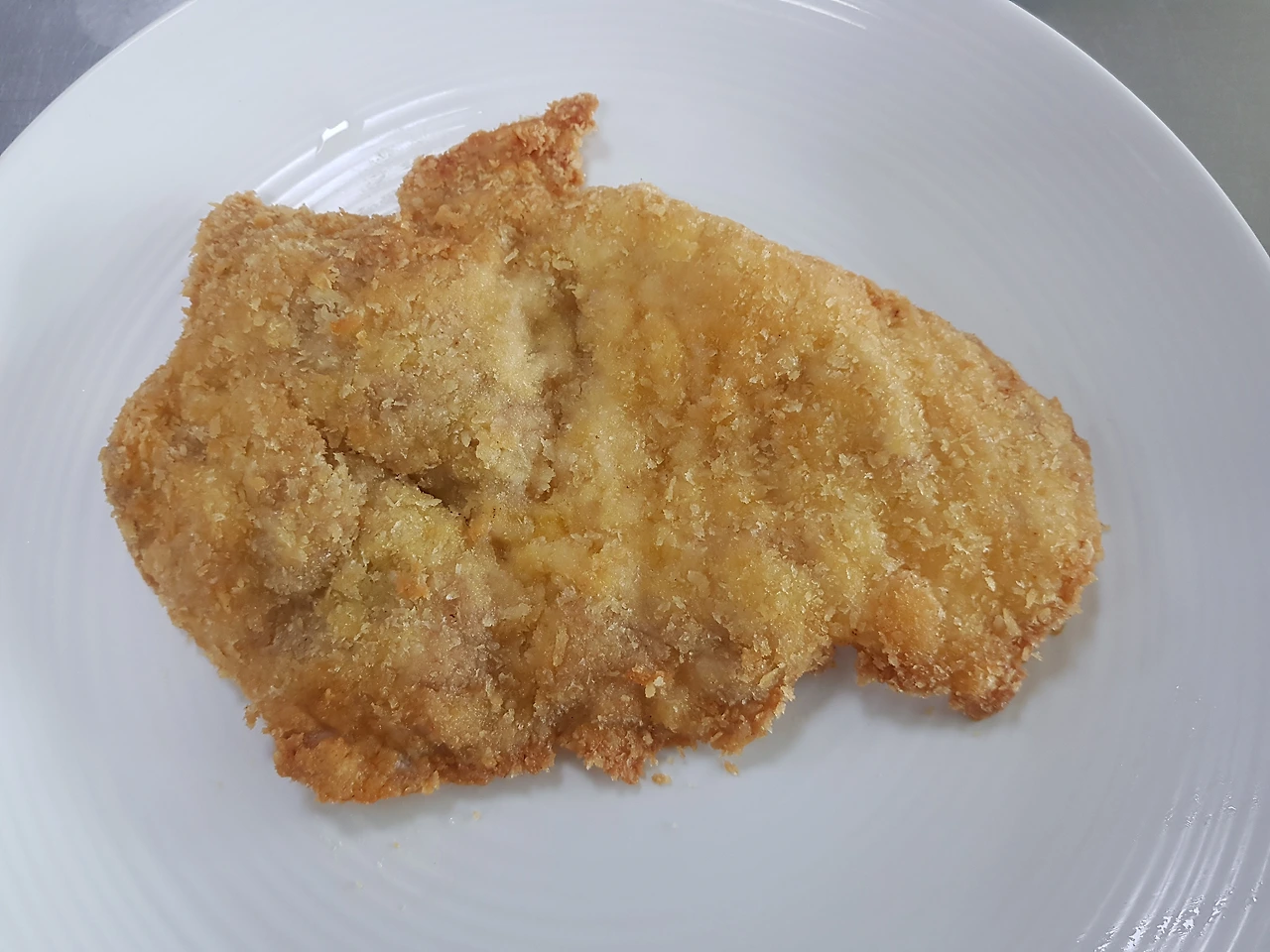 튀김옷은 '밀계빵(밀가루, 계란, 빵가루)' 순으로 준비한다. 간혹 시험때 순서를 헷갈릴수 있음으로 주의가 필요하다. 가능하면 넓은 접시 3개를 활용해서 골고루 묻혀낸다. 밀가루를 묻히고 여분의 가루는 털어내고 흰자와 노른자가 고루 섞인 달걀옷을 골고루 입힌다. 마지막으로 빵가루를 접시에 깔고 다시 고기를 얹고 고기위에 여분의 빵가루를 뿌려준다.