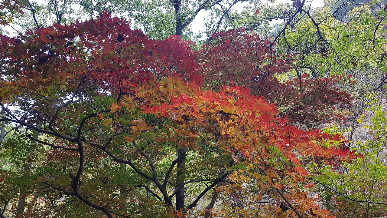 그렇게 무더웠던 여름날은 지구온난화로 인해 매년 기온이 상승하면서 우리를 괴롭히지만 또 언제 그랬냐 싶게 가을날이 되면 기온이 떨어진다. 사계절이 있는 우리에겐 숙명과도 같은 사실이다. 올가을에도 어김없이 온도가 떨어지고 산에는 단풍이 찾아왔다. 바로 10월 하순이 그 절정기다. 티브이 날씨 뉴스에서도 연일 단풍에 대해 떠들어 댄다.