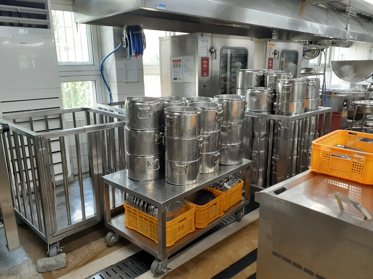 마치 축구팀 한 팀이 구성된 듯한 인원수이다. 영양사가 감독이라면 조리원은 필드를 뛰는 축구선수이며 조리장은 주장의 역할을 하듯이 조리를 리딩한다. 하루 식수인원은 약 1,500명이고 식당배식이 아니고 교실배식이다 보니 별도의 덤웨이터(dumbwaiter, 화물용 승강기)를 이용한다. 최종적으로 음식이 배송되어야 할 곳은 54군데(초등학교 45개 반, 유치원 4개 반, 기타 5개소)이다.
