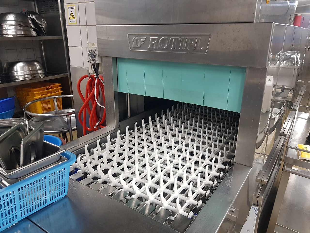 식판 담당은 잔반이 묻어있는 식판을 헹구고 애벌세척을 한 후에 1,500개의 식판을 내쪽으로 보낸다. 반찬통 담당은 반찬통 잔반을 털고 세척한 후에 약 150개 정도의 반찬통과 반찬뚜껑을 또 내쪽으로 보낸다. 국통 담당은 잔반을 쏟아붓고 세척 후에 50여 개의 국통과 국통뚜껑을 여지없이 다시 내쪽으로 보낸다. 마지막으로 식판을 담았던 파란색 플라스틱통 50여 개가 세척 후에 나에게로 온다.
