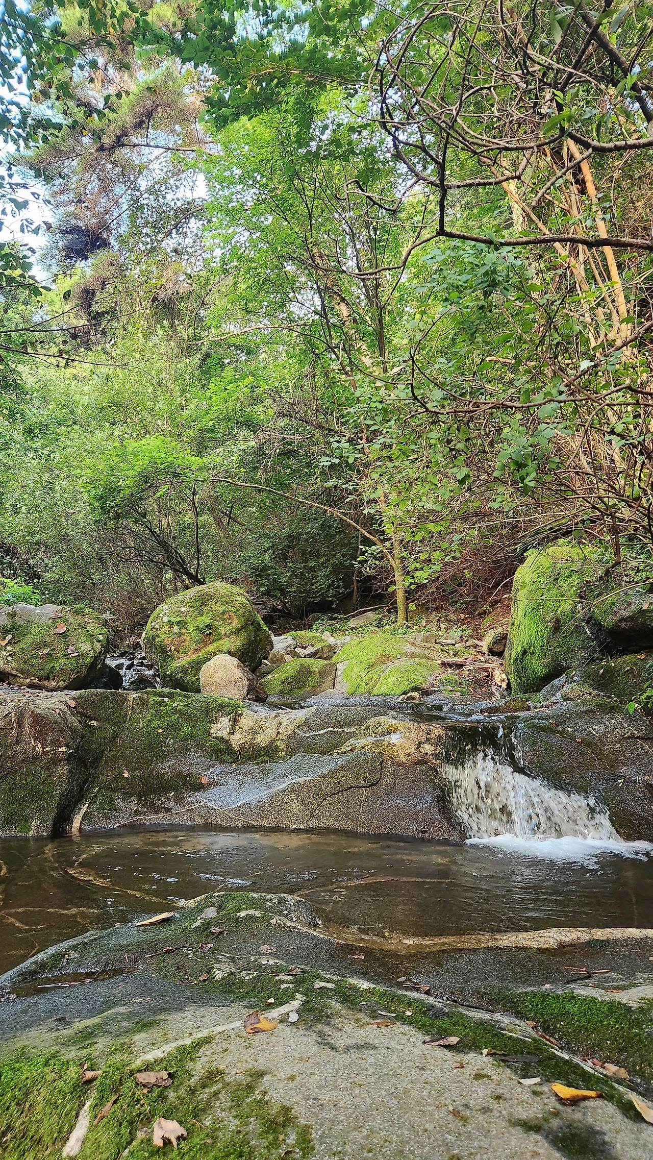 계곡의 냉수는 뒷목을 거쳐 등줄기를 타고 내려간다.