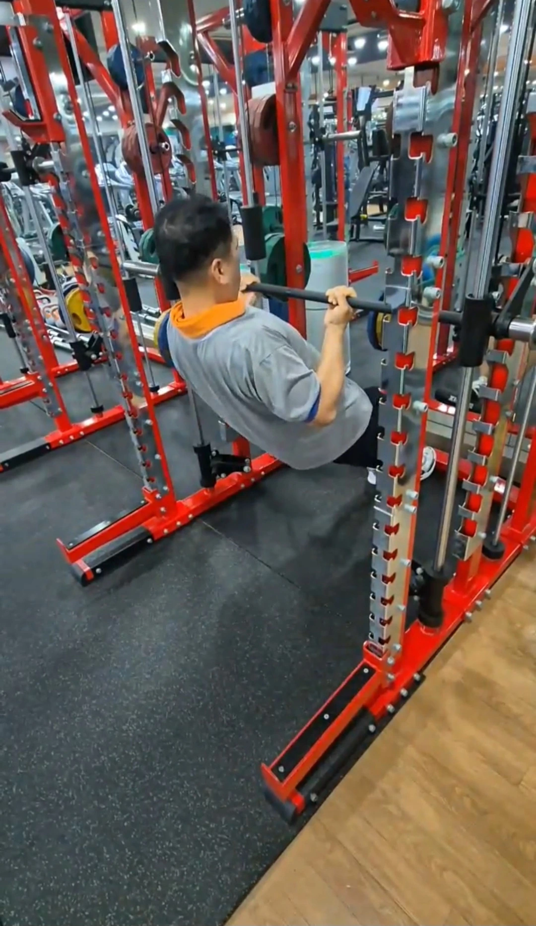 철봉의 첫 번째 자세는 등근육을 위한 자세로 봉의 고정핀은 제일 위쪽에 맞추고 발을 쭉 뻗고 뒤꿈치에 체중을 싣는다. 그리고 철봉 하듯이 양손으로 잡아당긴다. 두 번째 철봉자세는 가슴근육 강화를 위한 자세로, 철봉위치를 배꼽에 두고 팔 굽혀 펴기를 한다. 이때 다리는 앞축으로 서고 뒤축은 들어 올린다.