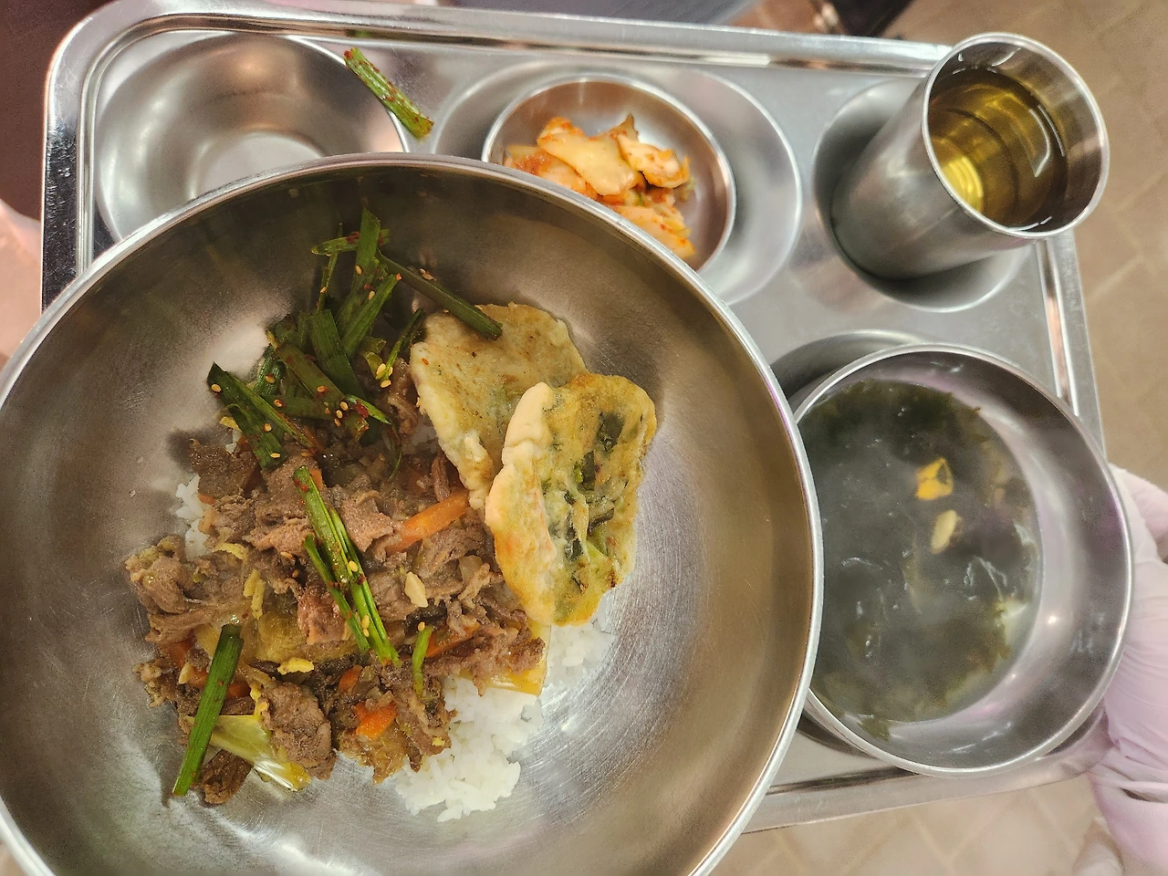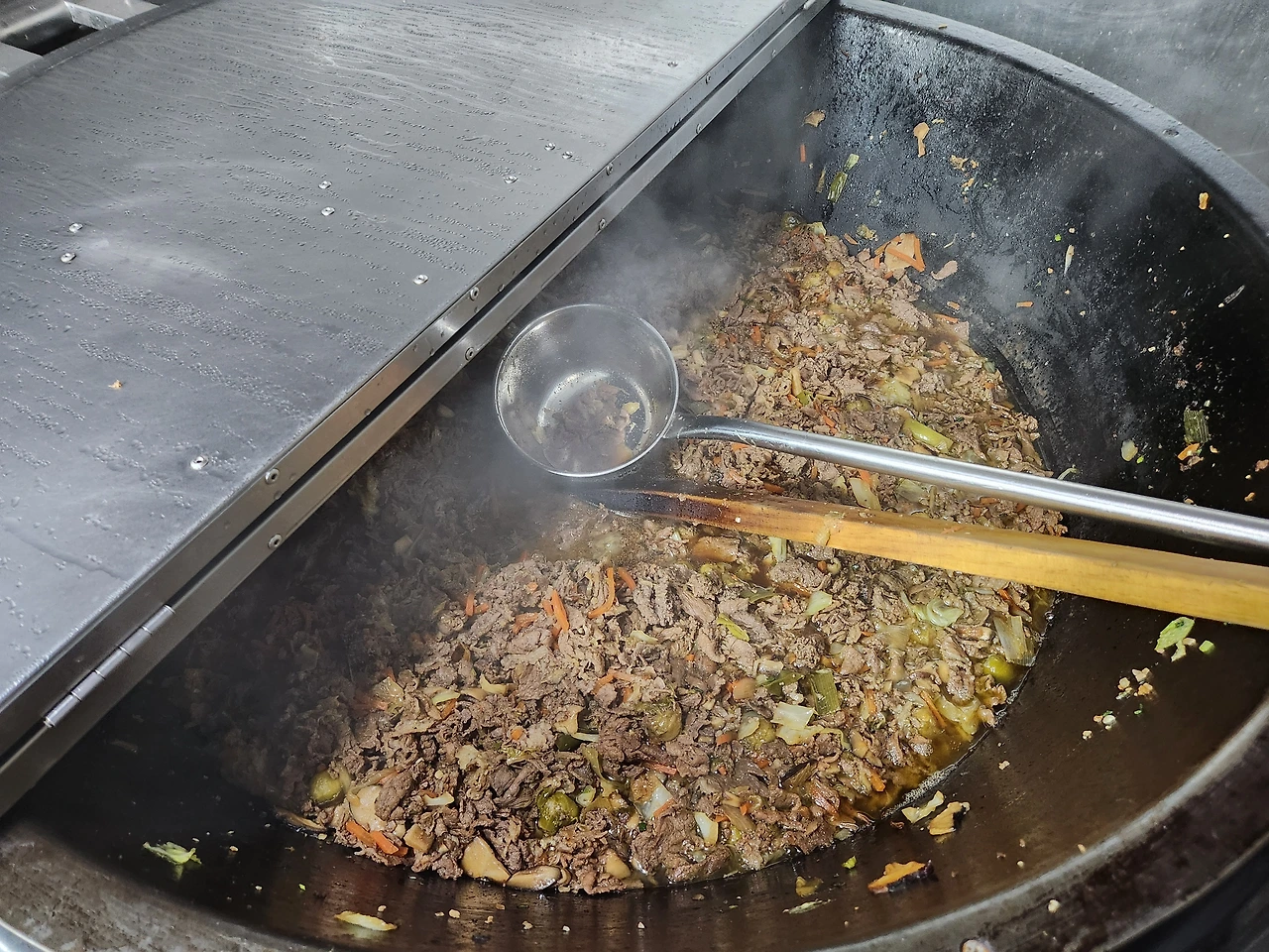 전날 명동밥집에서 '불고기 덮밥'을 만들기 위해 대형솥에서 불고기를 볶을 때도 근육운동하는 느낌으로 커다란 나무주걱으로 바닥을 박박 긁었다. 최대한 왼팔은 손잡이 부분 하단을 잡고, 오른팔은 상단 끝단을 잡고 마치 전쟁 중 거북선 '노군'처럼 사력을 다해 천명분 불고기를 뒤집는다. 등 쪽에 '빡'하고 근육에 힘이 생기는 것이 느껴진다.