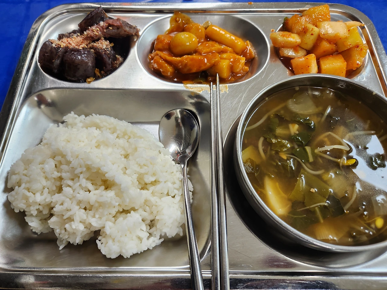배식하는 봉사자에게 '선지 빼고 국물만 주세요.'라고 요청하지만 그게 그렇게 쉽지가 않다. 나름 국물위주로 퍼주기는 하지만 그래도 부서진 선지 덩어리가 야채와 뒤엉켜 있다. 먹을까 말까 고민하다가 눈 딱 감고 후루룩 목 넘김 해본다.