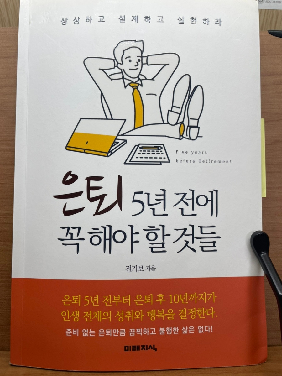 독서를 하면서 함께 시작한 것이 글쓰기이다. 숭례문 학당에서 주관하는 '글쓰기 입문 과정'을 배우고 '100일 글쓰기 곰사람 프로젝트'라는 과정도 수강했다. 평생 이공계통에서 공부하고 직장 생활을 하는 나로서는 생소한 경험이었지만 나름 신선한 체험이었다. 조금씩 '일신우일신' 한다는 생각으로 하다 보니 재미도 있고 문장도 나아지고 있는 느낌도 들었다. 그러다 보니 은퇴 관련 내용들을 글로 써보면 어떻까 하는 생각이 들어서 다시 100권의 책을 다시 곱씹어 읽고 글을 써보기로 했다. 제일 먼저 다시 읽기 시작한 책은 <은퇴 5년 전에 꼭 해야 할 것들, 전기보 지음, 미래지식, 2018년>이다.
