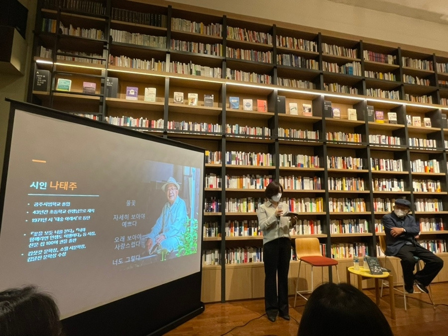 책 읽기 독서모임, 회원 소개로 선릉역 인근에 위치한 '최인아 서점'을 알게 되었다. 대형 서점은 아니지만 책 진열 방식이나 저자의 북토크가 활발하게 운영되고 있다는 점에서 인터넷애서 꽤나 유명한 곳이어서 한 번쯤은 가보고 싶었다. 마침 5월의 마지막 주에 고희정 작가의 <어느 날 예술이 시작되었다. 2022. EBS Books> 와 함께 시인 나태주의 북토크가 진행되었다. 고희정 작가는 방송작가로 활동하고 <딩동댕 유치원>, <뽀뽀뽀> 등의 프로그램을 쓴 나름 방송계에서는 알아주는 작가이며 나태주 시인은 최근 tvN 채널 개그맨 유재석의 '유퀴즈'에 출연하여 셀럽으로 자리매김하고 있는 유명 시인이다.