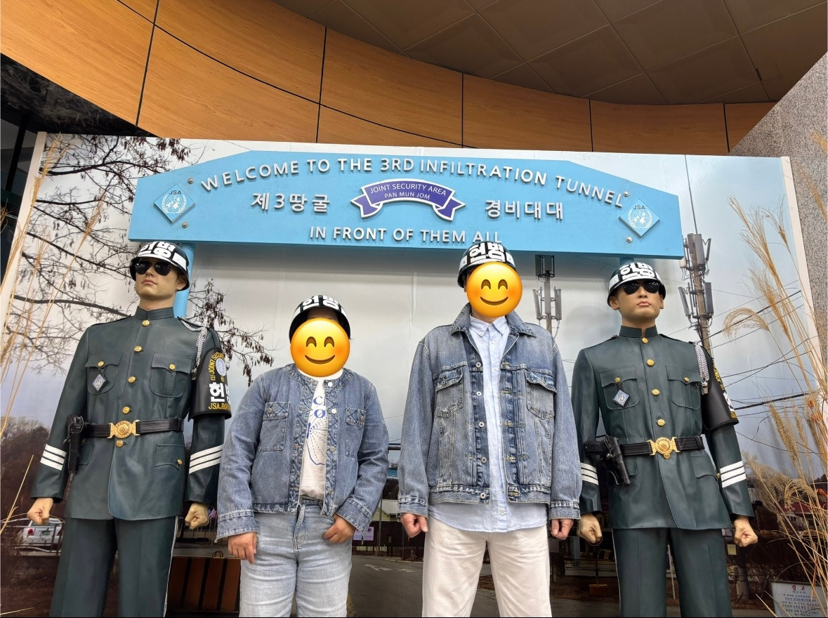 우리들은 헌병 모형이 있는 배경으로 헬멧을 쓰고 기념사진을 찍고 버스에 올랐다.