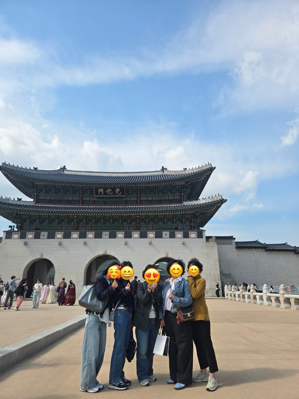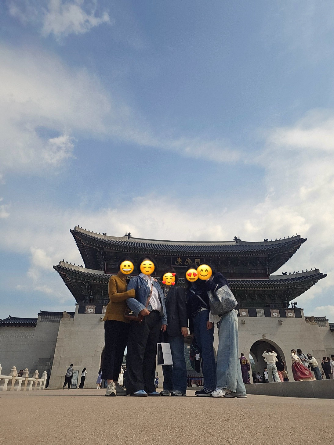그래도 애들은 신이 나서 경복궁 입구 앞에서 사진을 찍자고 한 친구가 폴더식 핸드폰을 바닥에 놓고서 손짓을 하며 사진을 찍었다. 50대 아주머니들이 그렇게