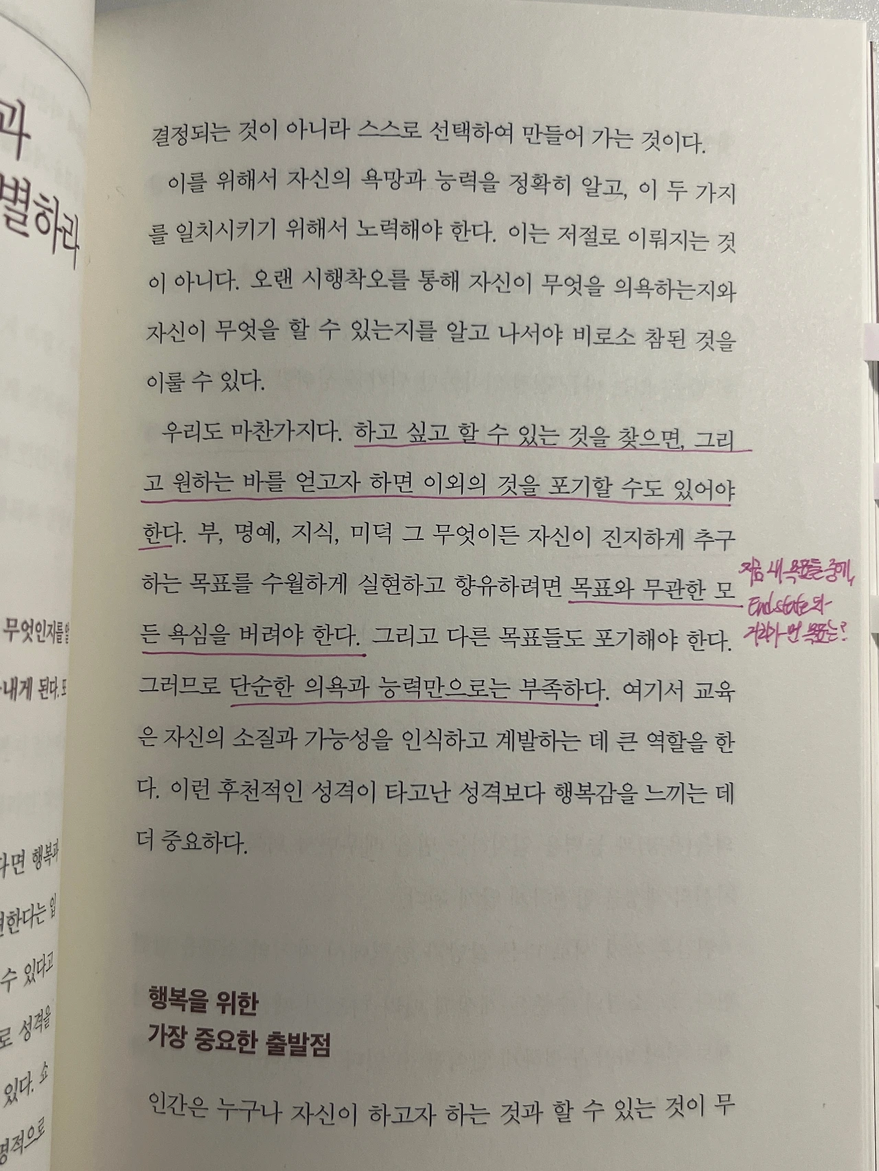 사색을 할 수 있는 것이 가장 큰 행복이다. 즐거움을 나의 외부가 아니라 내부에서 찾을 수 있어야 한다.