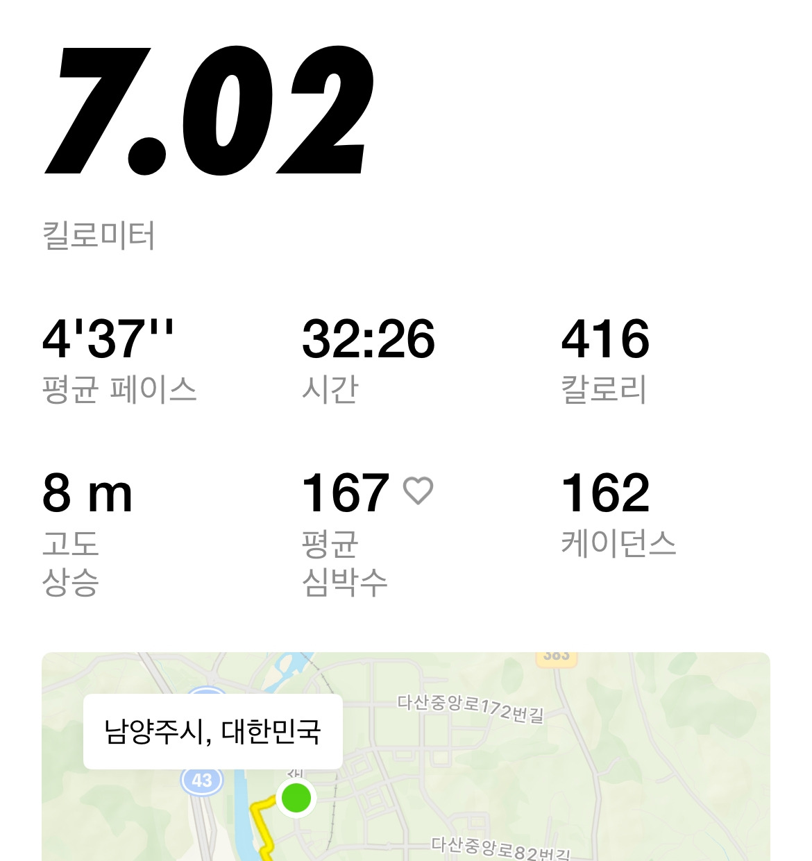 보통 웬만하면 4분대 페이스로 뛰었다.