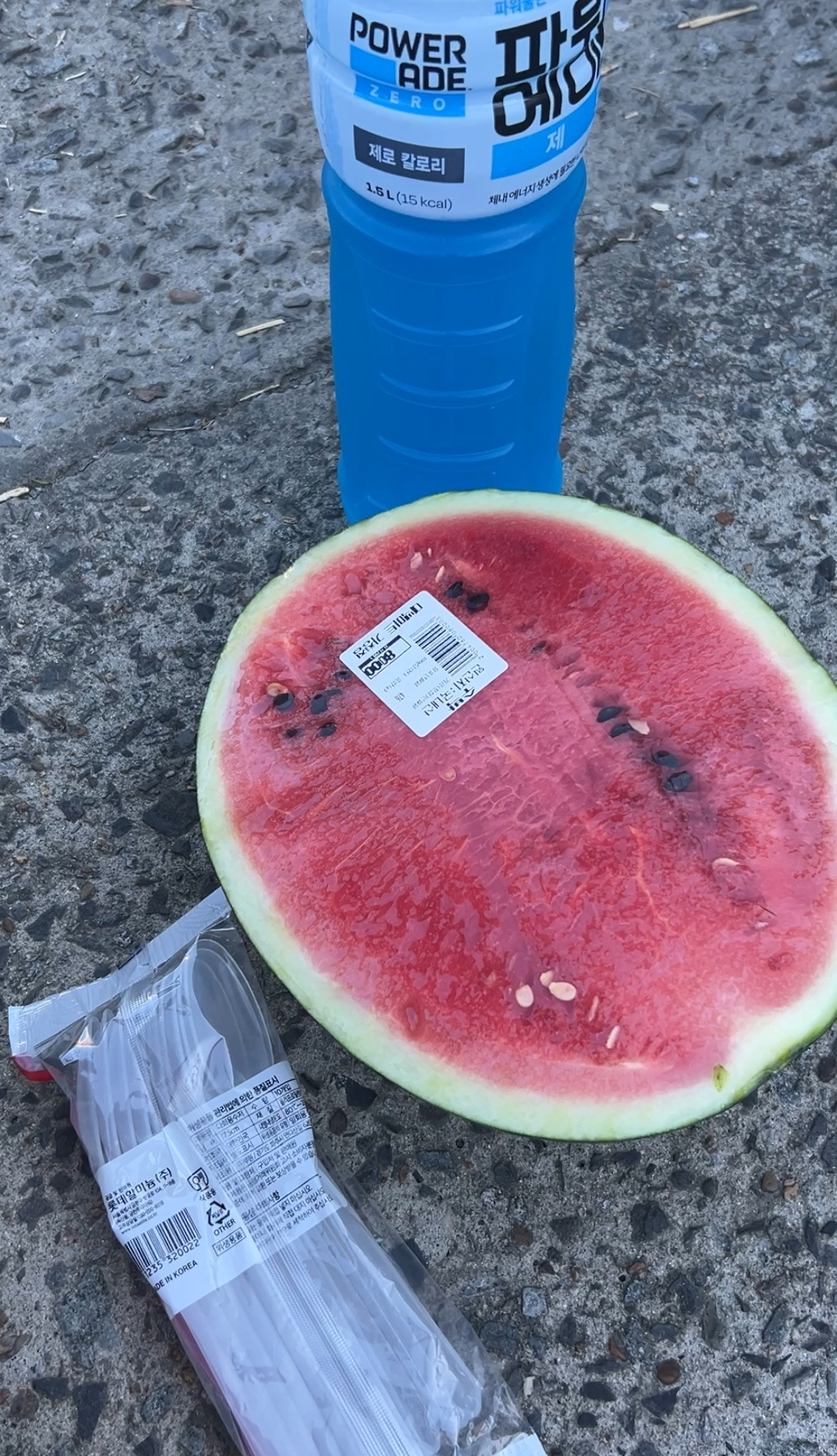 가창에 도착해서 용석이가 수박이랑 파워에이드 사줬다.