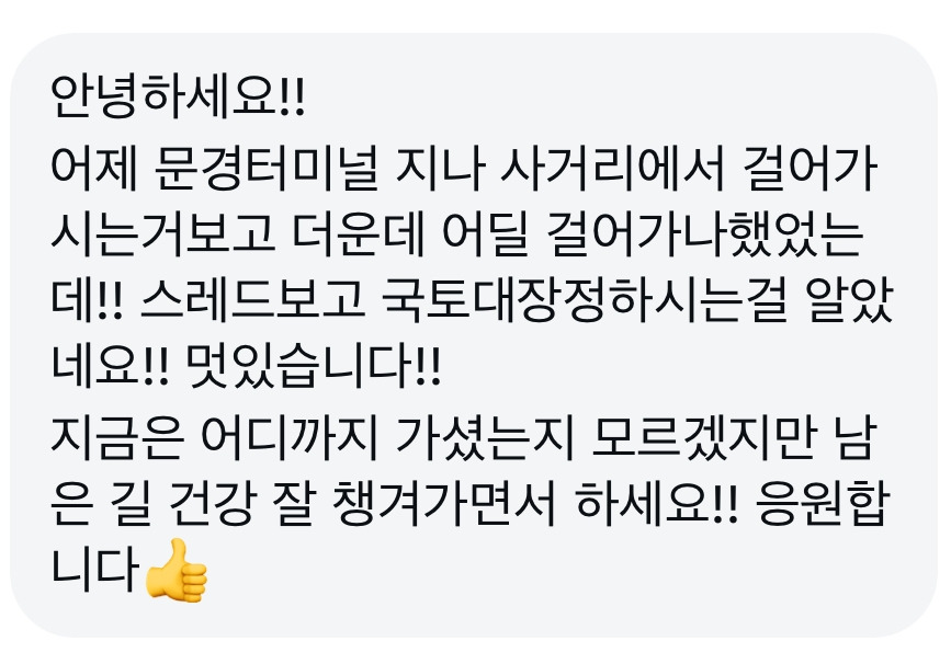 난 은근 관종인가 보다. 관심받으니까 더 즐겁게 걷게 됐다.