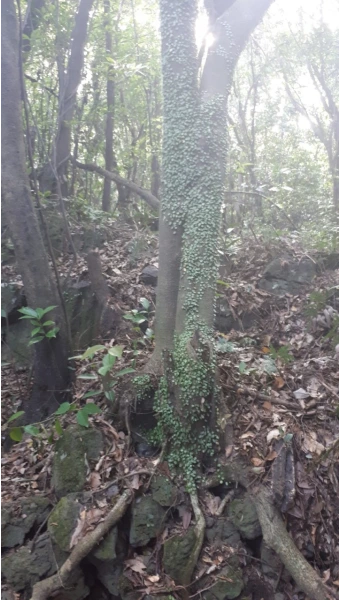 칡과 등나무를 같이 본 것도 이 숲에서 처음이다. 갈등이라는 말의 어원이 칡 갈(葛), 등나무 등(藤)에서 유래되었는데 칡의 줄기는 왼쪽에서 오른쪽으로 감아 올라가고, 등나무 줄기는 오른쪽에서 왼쪽으로 감아 올라가 서로 뒤엉키면 그 둘을 떼어 풀어놓기가 매우 어려운 데서 생긴 말이라고 한다. 칡덩굴에 깔린 등나무가 썩어 없어지기도 하고, 1년 2년이 지나면 등나무에서 새순이 돋아나 역전하게 되는 것을 볼 수 있다.